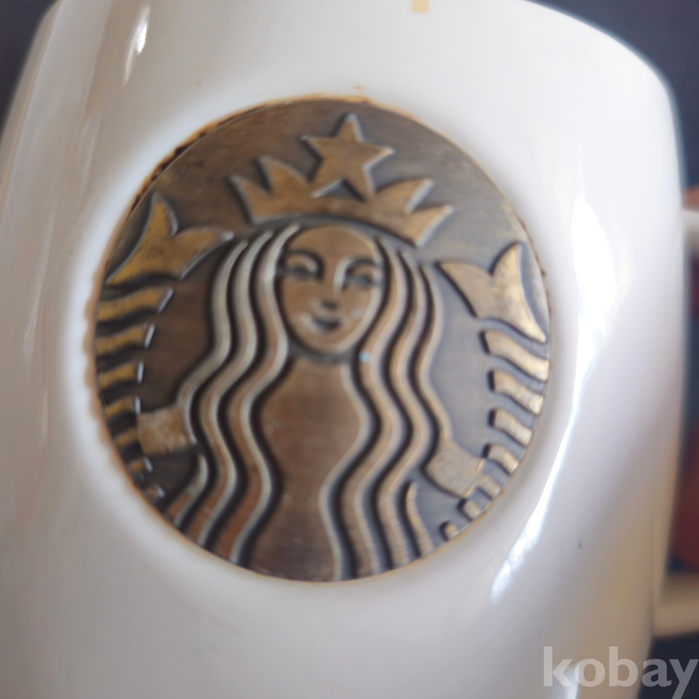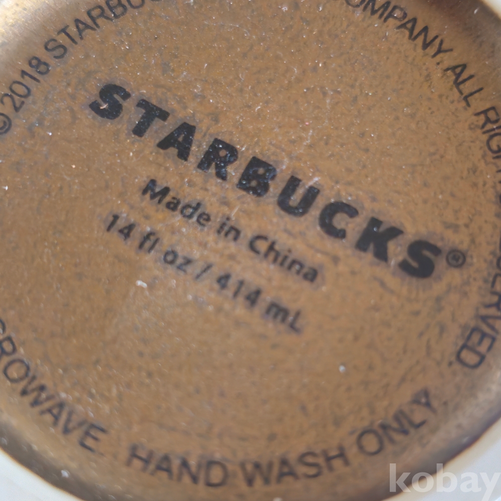 (((스타벅스))) 2018년 금속로고부착 스타벅스 (STARBUCKS) 도자기 머그컵 (14fl oz / 414ml)