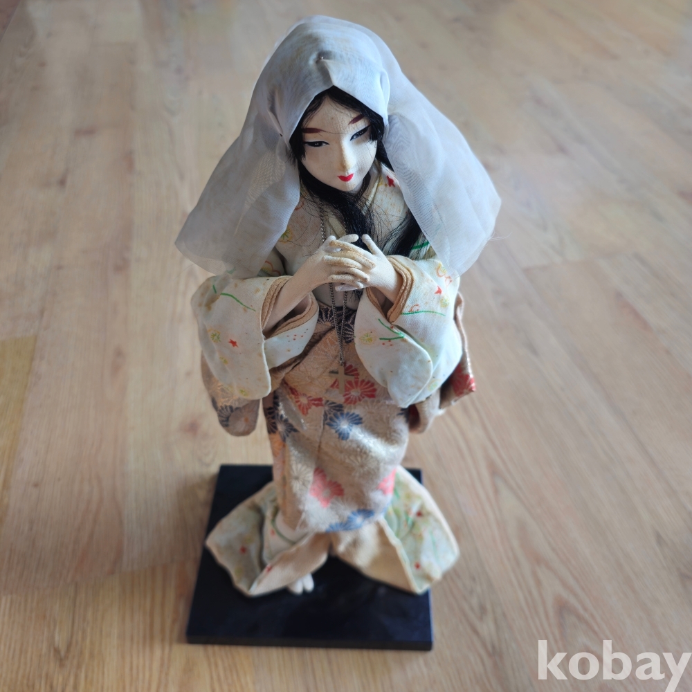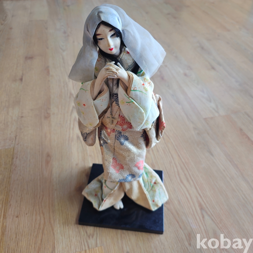(((인테리어소품/일본인형))) 오래전 일본에서만든 십자가목걸이 비교적 큰 기모노여인모습 천 인형