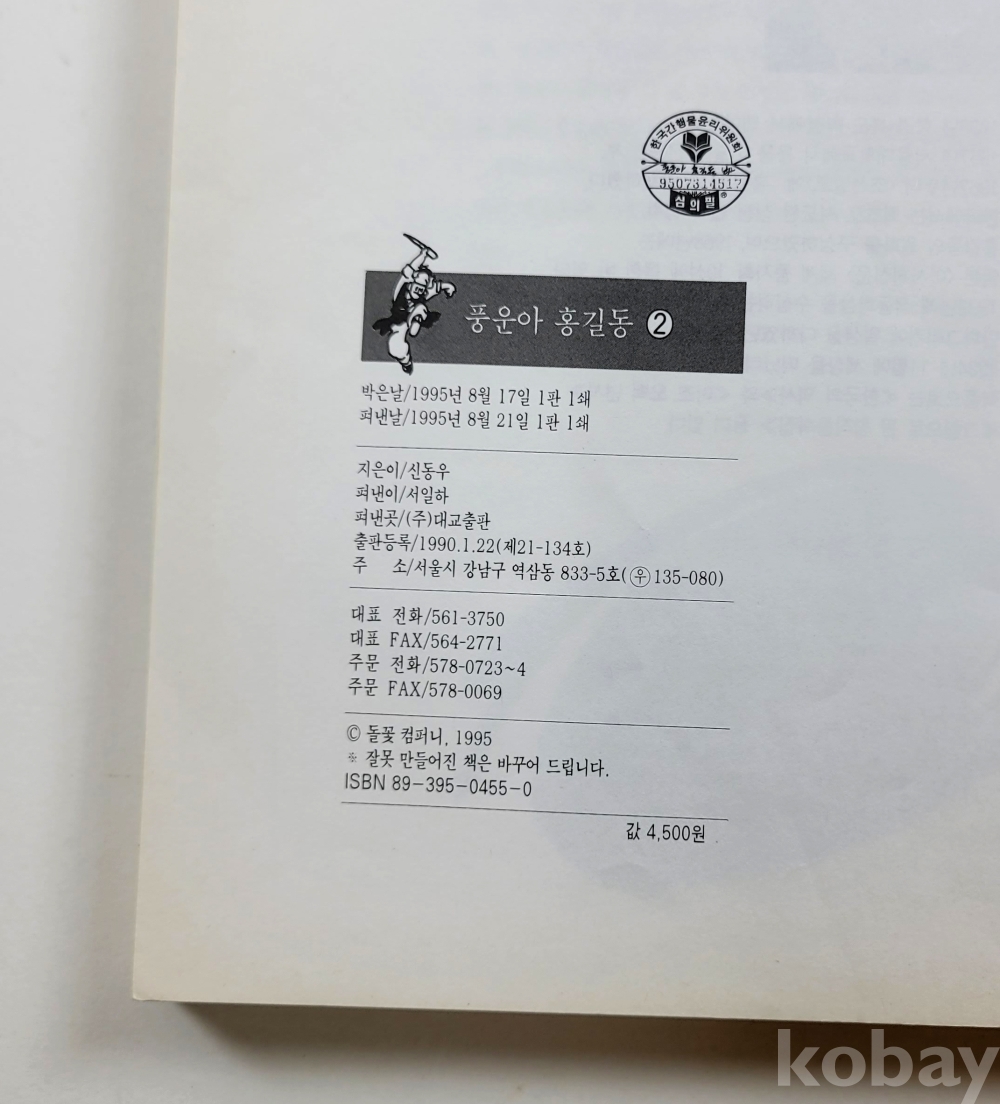 물 품 명 | 신동우 / 풍운아 홍길동(2) / 1995년 초판 / 대교출판 |