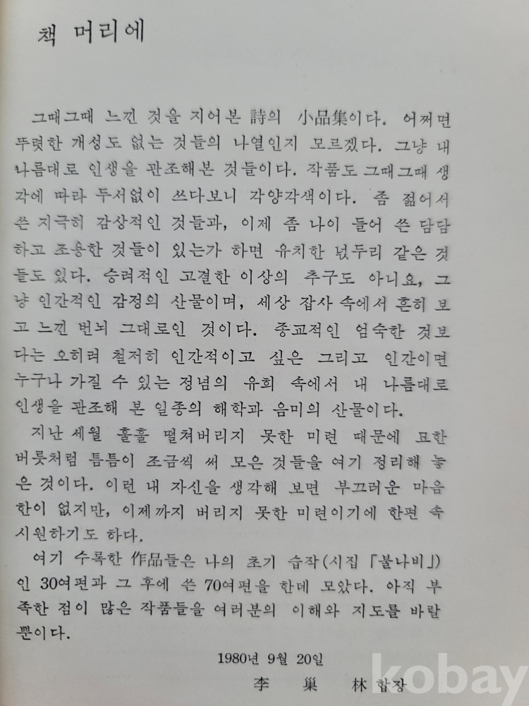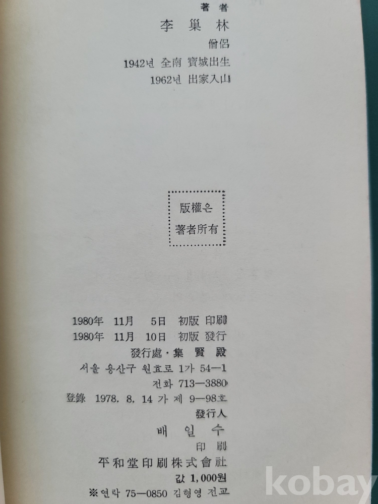 '集賢殿'에서 발행한 승려 시인의 담백한 시집.