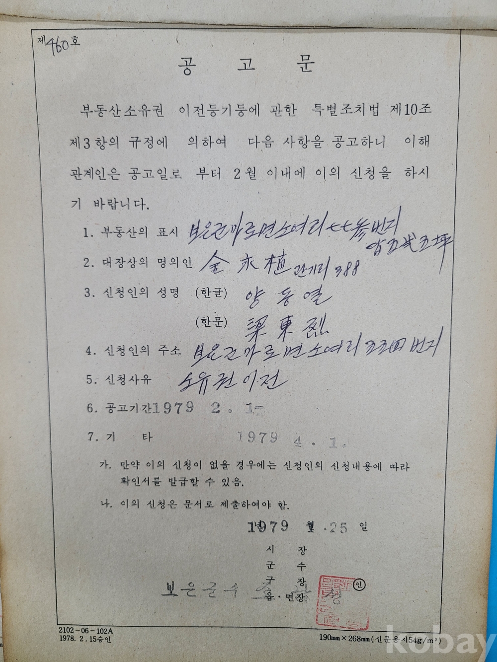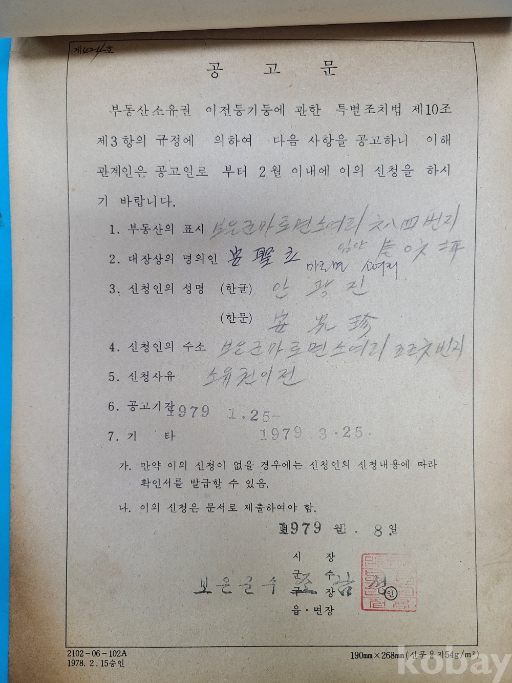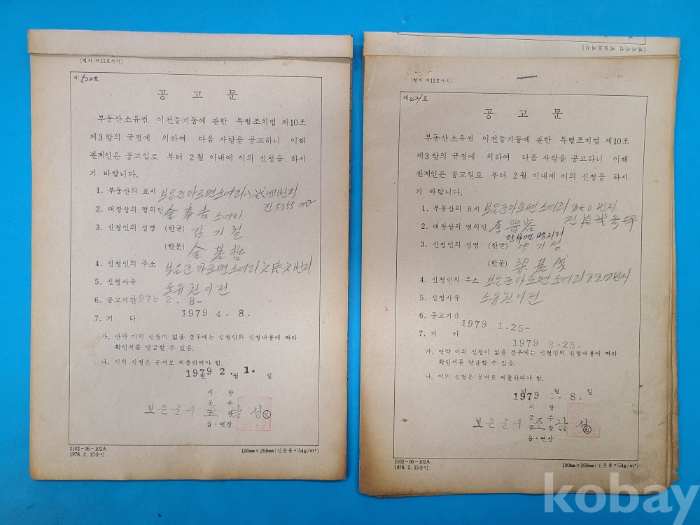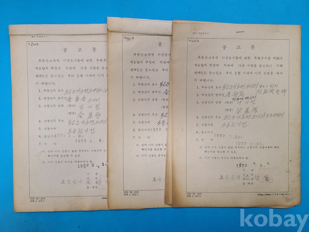 **** 부동산소유권이전등기등에 관한 특별조치법 제10조 제3항의 규정에 의한 공고문 충청북도 보은군 마로면