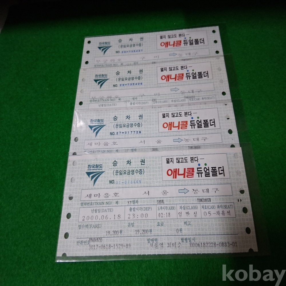 한국철도 광고새마을,무궁화,승차권 각2매 사용제