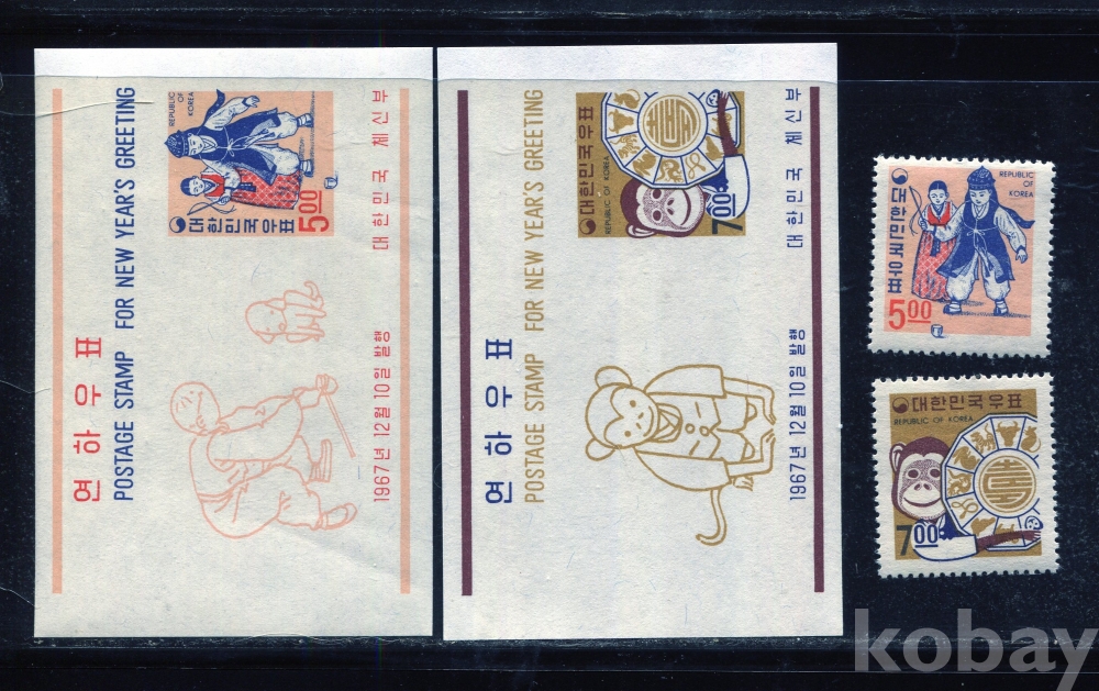 - [시트/우표] 1967년 미사용 연하시트 및 우표 (All MNH : Mint Not Hinged) : 이미지 참조하세요