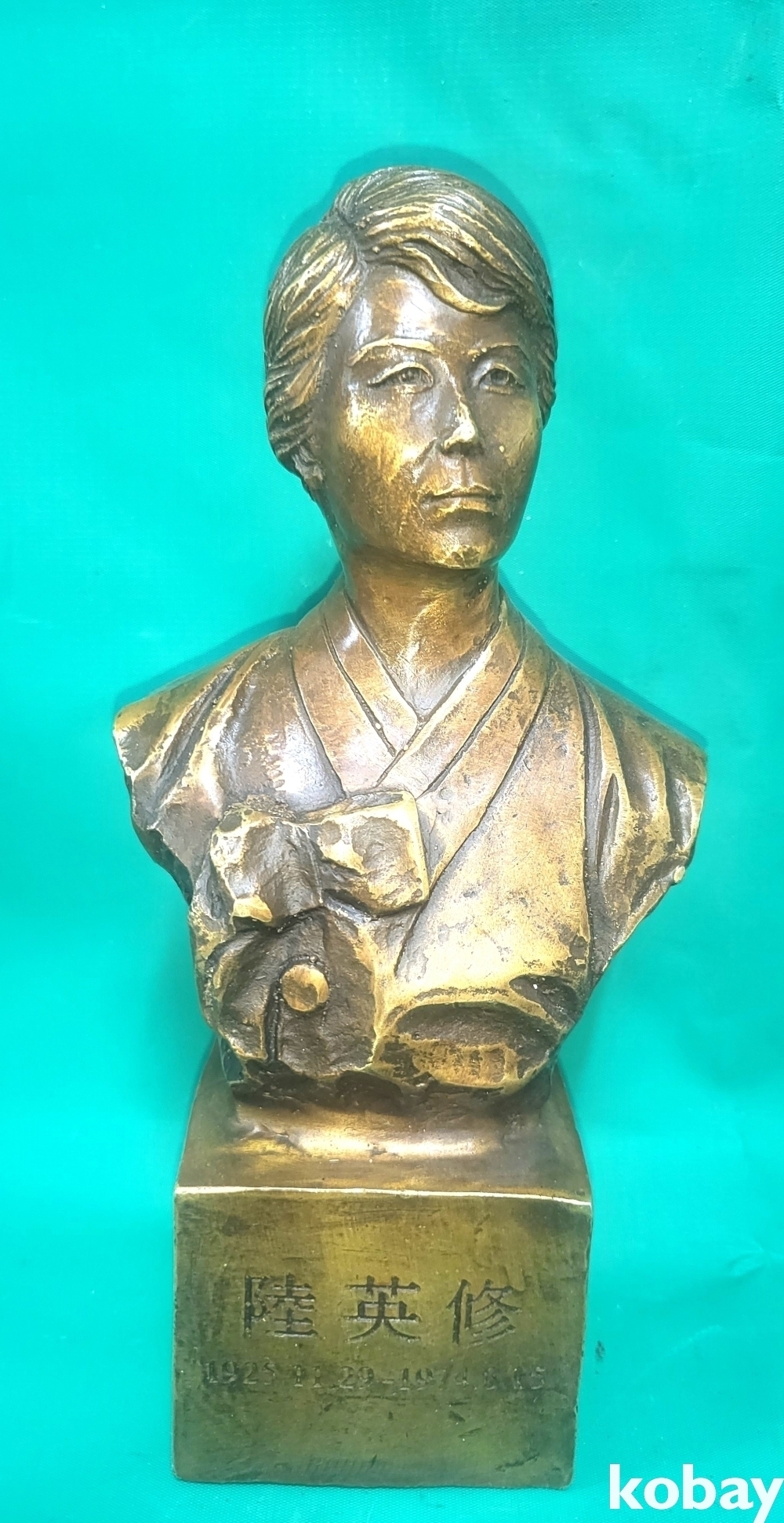 황색 동으로 만든 육영수 여사 흉상입니다,
