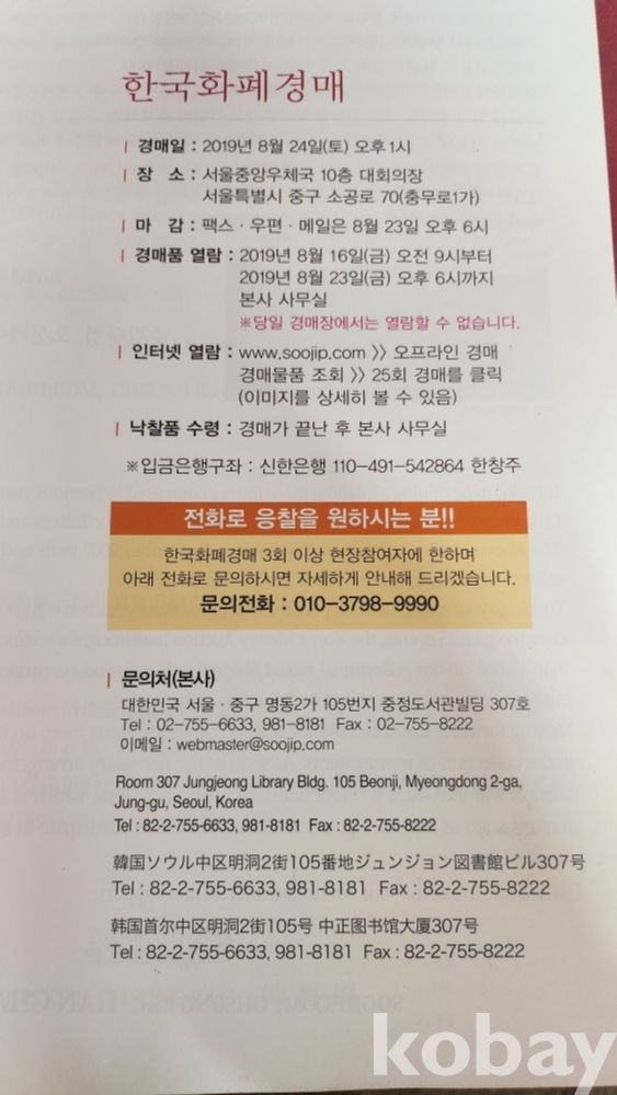한국화폐경매 도록 책자입니다,