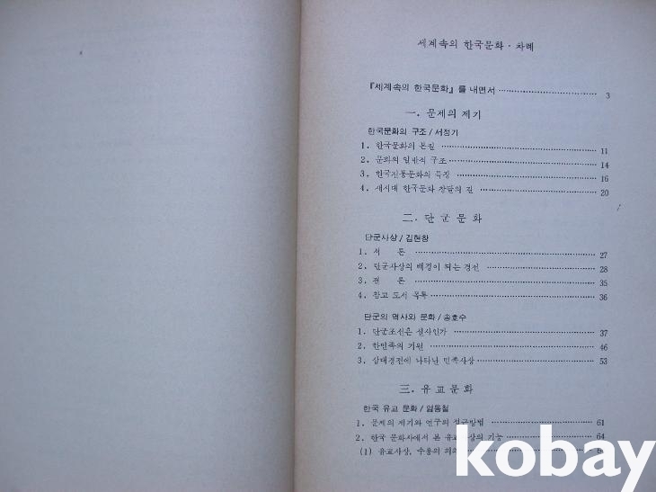 서정기의 총론에 이어 단군문화, 유교/불교/도교/기독교 문화, 풍토문화, 현대사회 문화의 8장으로 논문들을 묶었다.