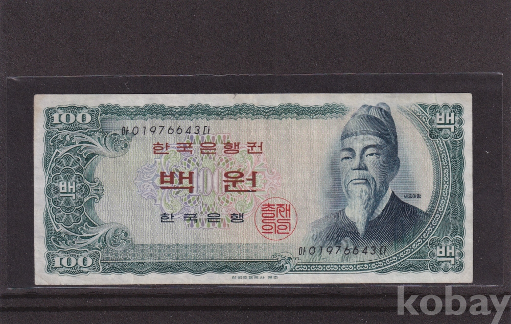 - 한국은행 1965년 세종 백원 줄세우기 0포인트 사용제 지폐