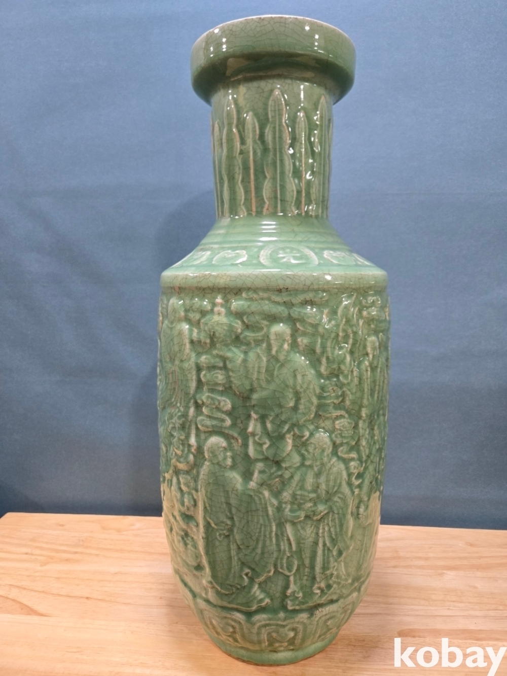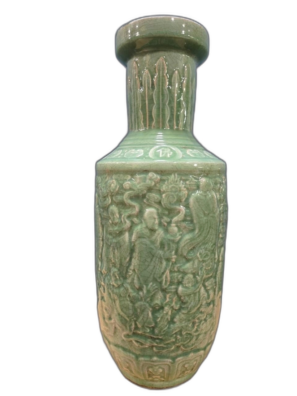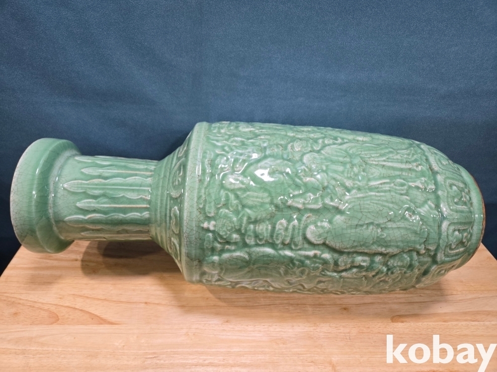 15인의 인물이 돌출로 표현된 도자기 입니다.
