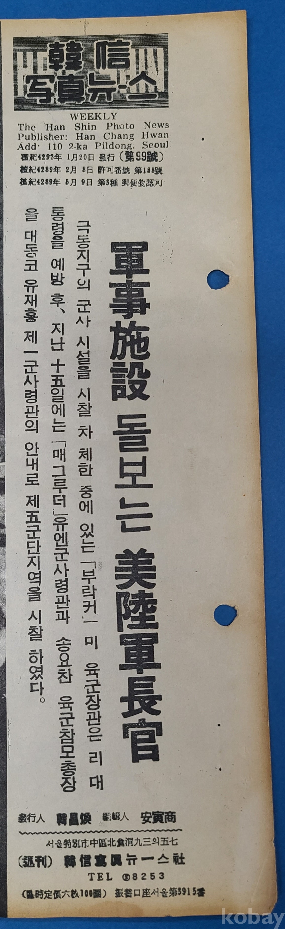 1956년 韓國寫眞뉴스*군사시설 돌보는 미육군장관,이대통령,5군단 시찰...