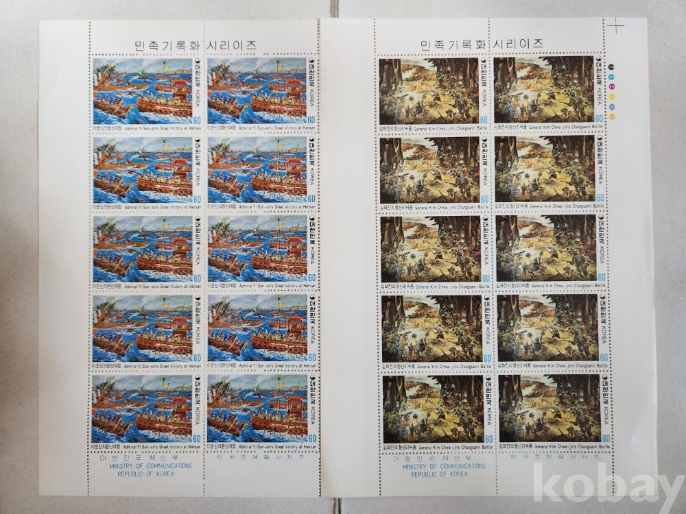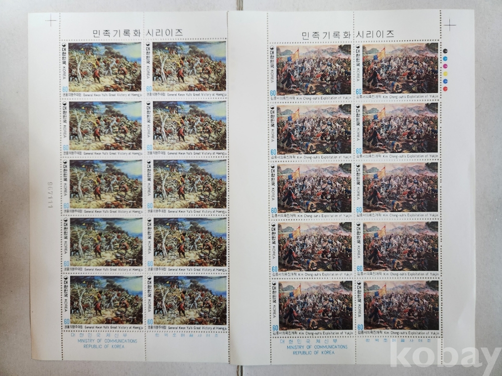 -대한민국 1982년 민족기록화 시리즈 3집, 4집 4종 기념우표 전지 입니다.