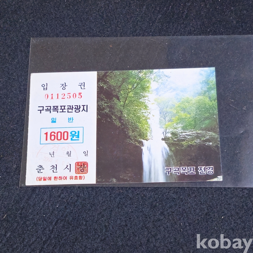 (((근현대사자료/입장권/관람권)) 2000년 구곡폭포관광지 입장권 (1600원)