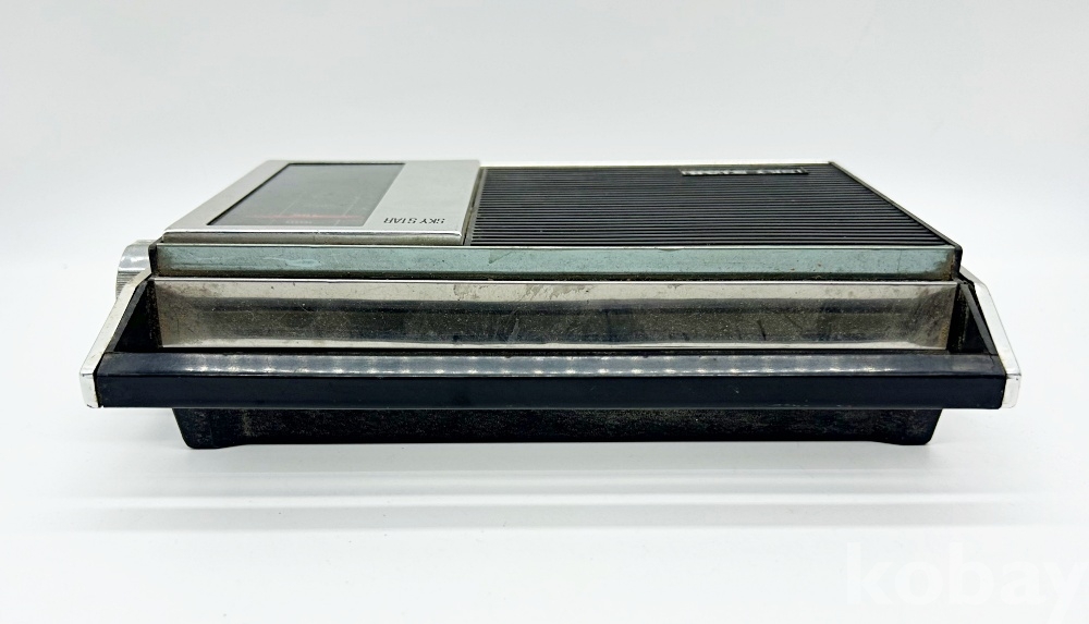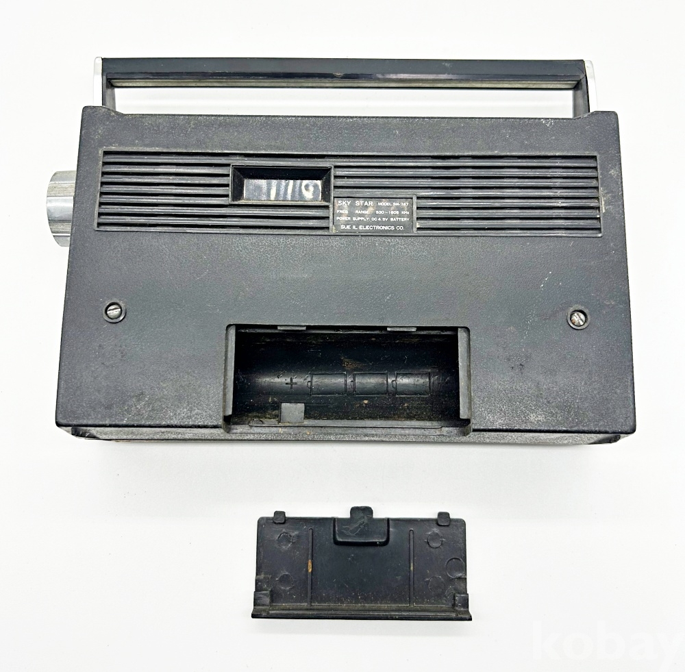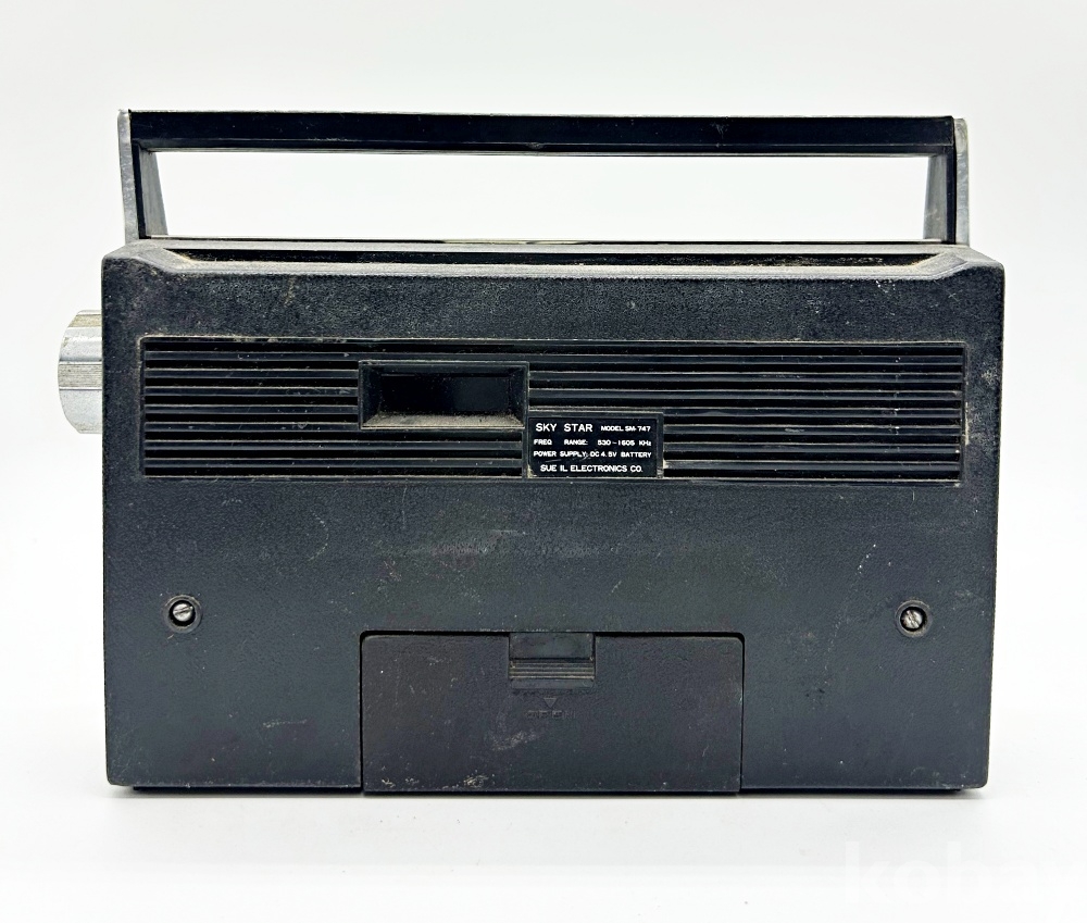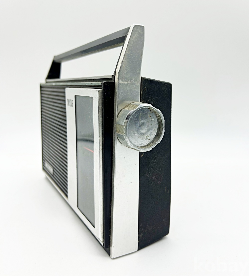 상품설명 | AM 전용 라디오로 우측에는 주파수 조절, 좌측에는 볼륨 조절하는 다이얼이 장착되어있다. DC 4.5V 배터리를 사용하는 모델이다. | ||