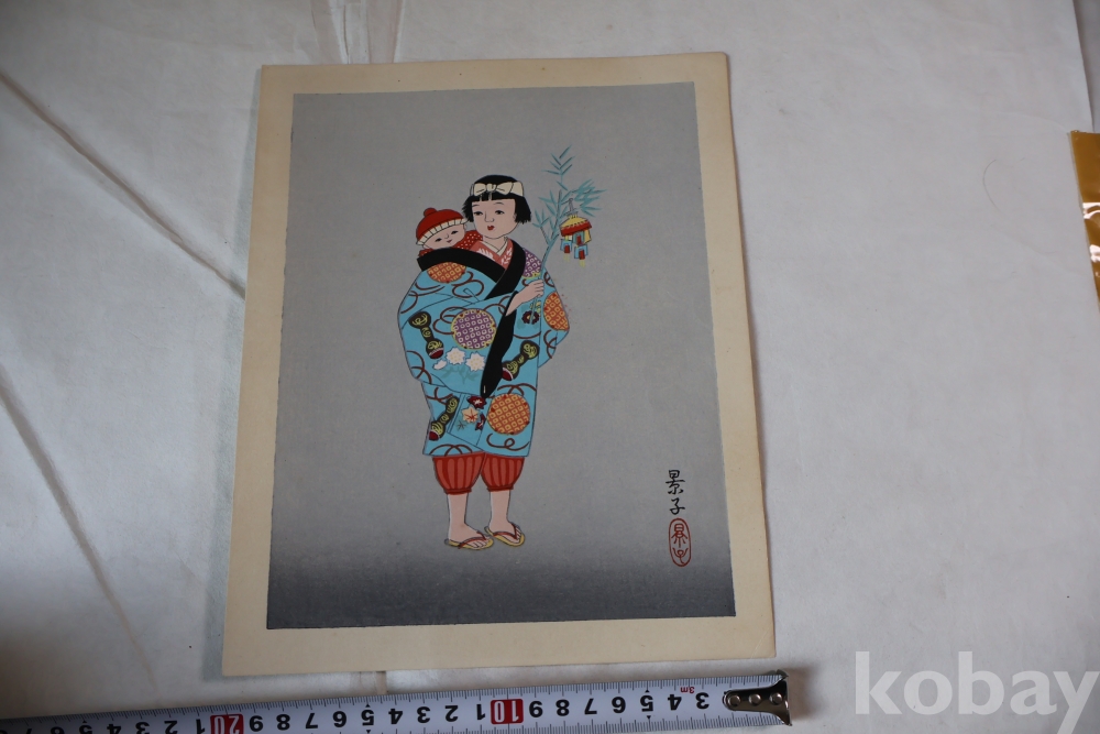 동심의 세계를 주제로 한 많은 작품을 남긴 화가의 진품 목판화 임니사진 참조 하세요