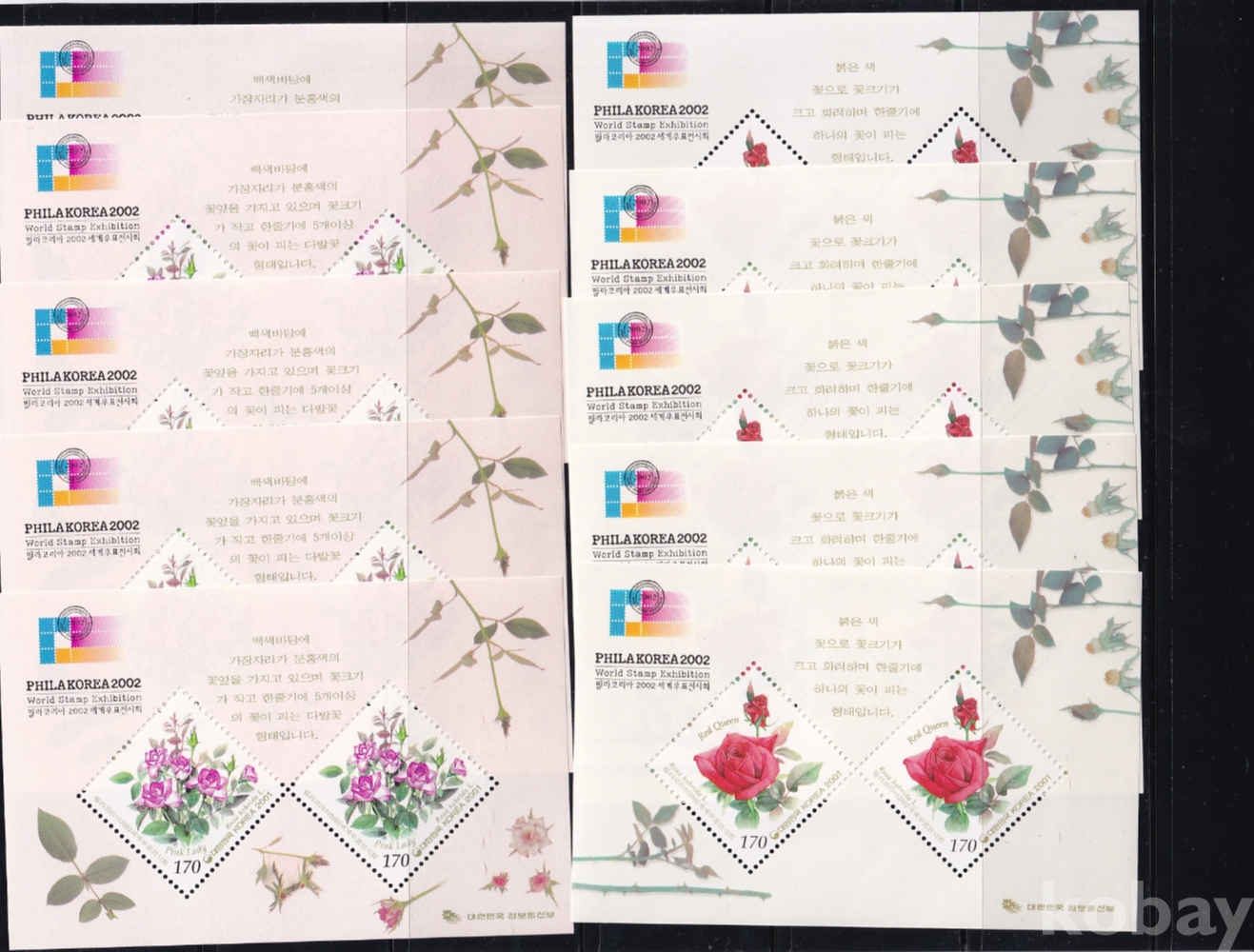 - 미사용 필라코리아 2002년 세계우표전시회 시트 2종 10장 모음