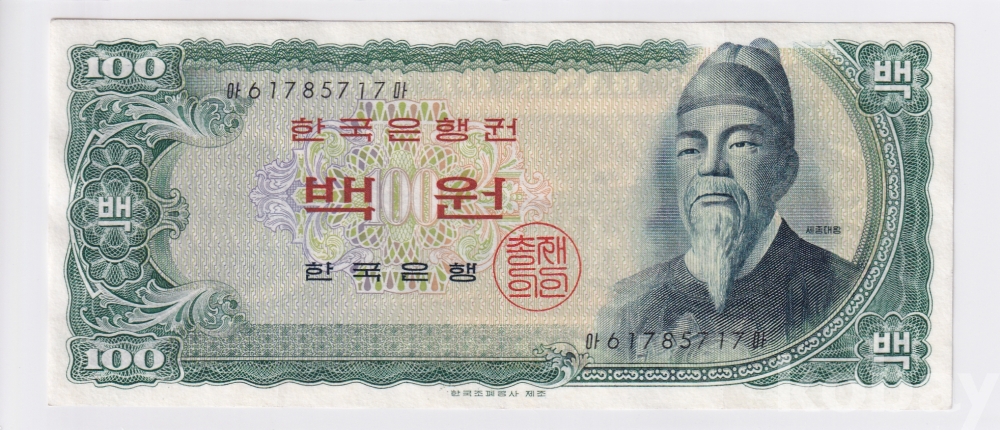 - 한국은행 1965년 세종 백원 줄세우기 61포인트 사용제 지폐