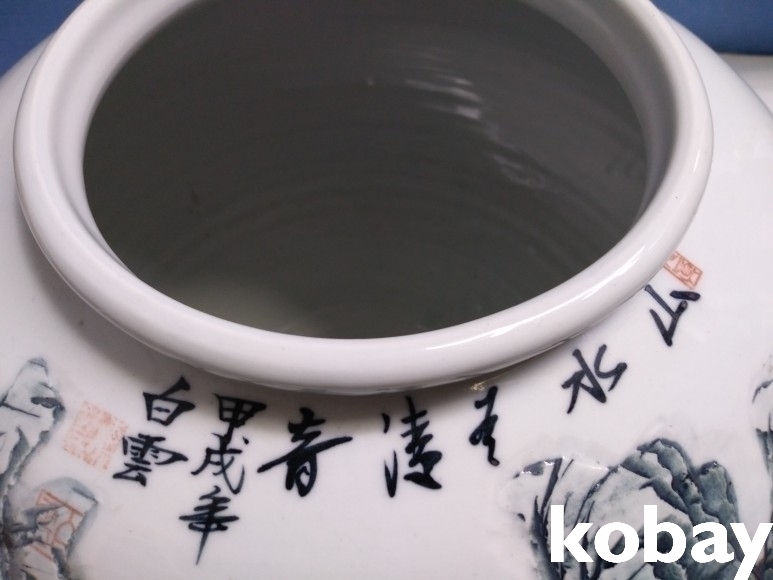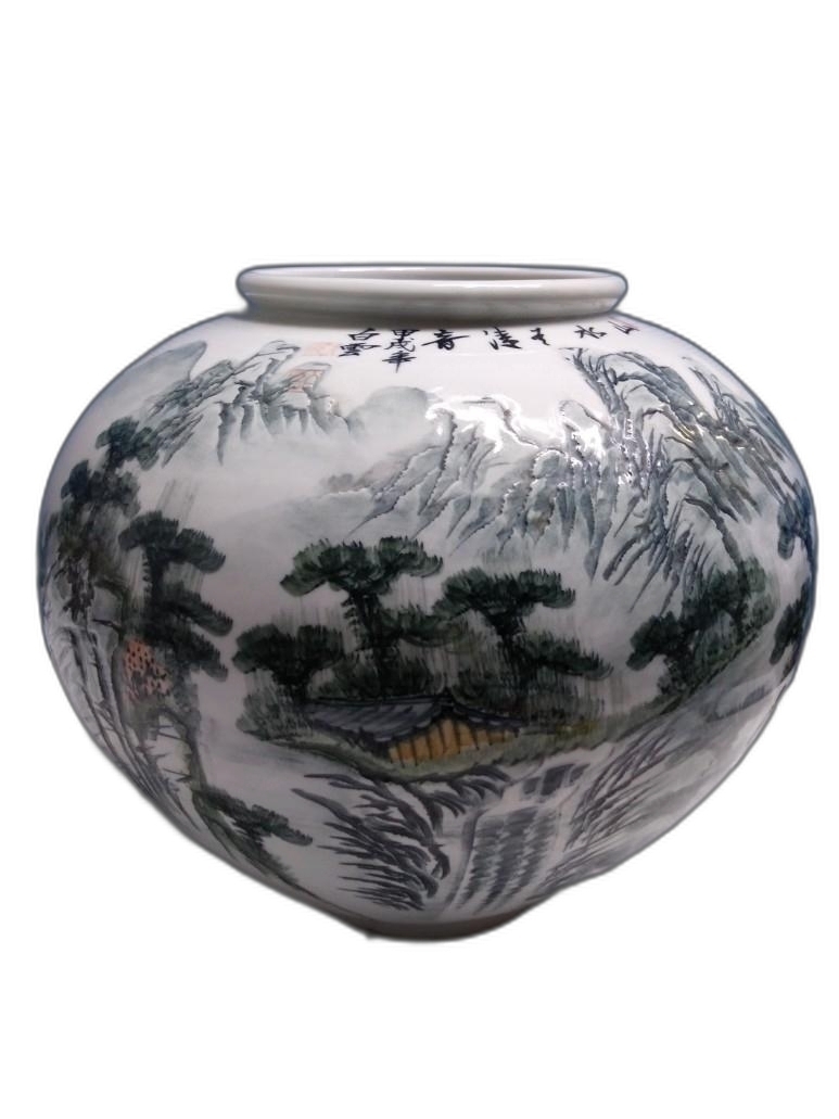 산수 문양이 손으로 만져지는 도자기 입니다.