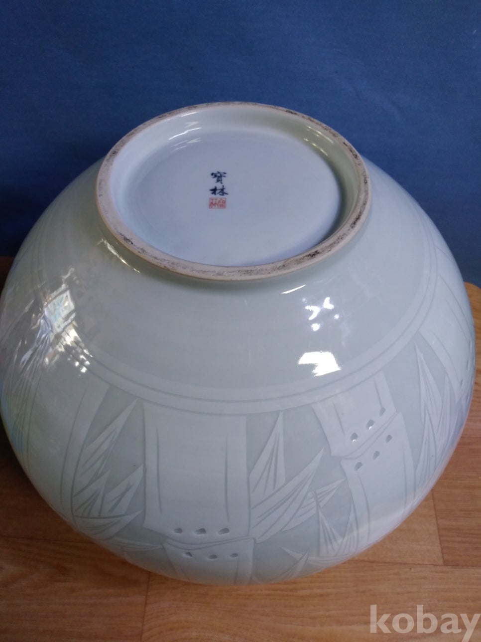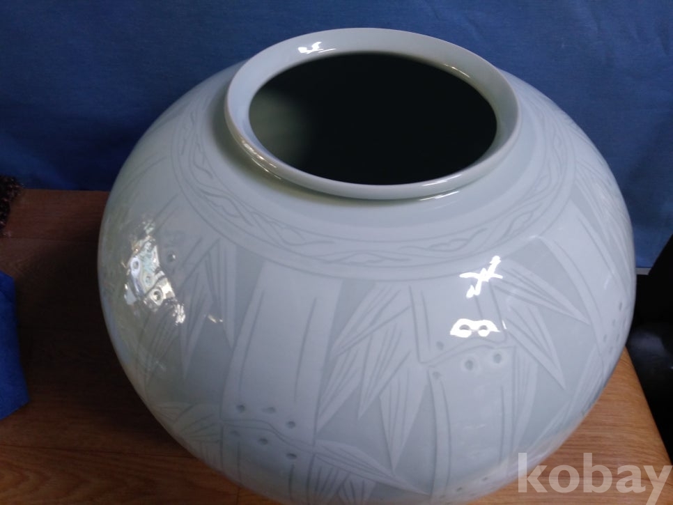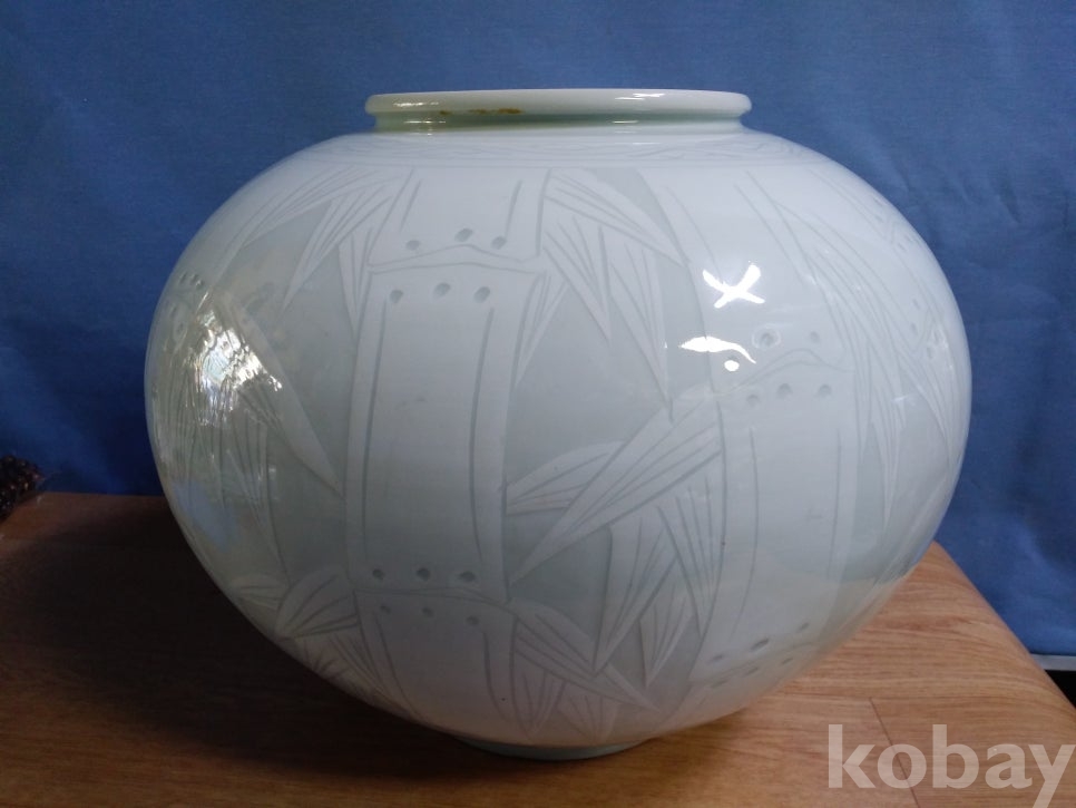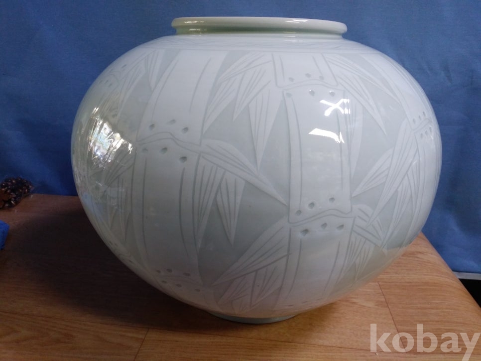 대나무 문양이 표현되어 있는 대형 달 도자기 입니다.