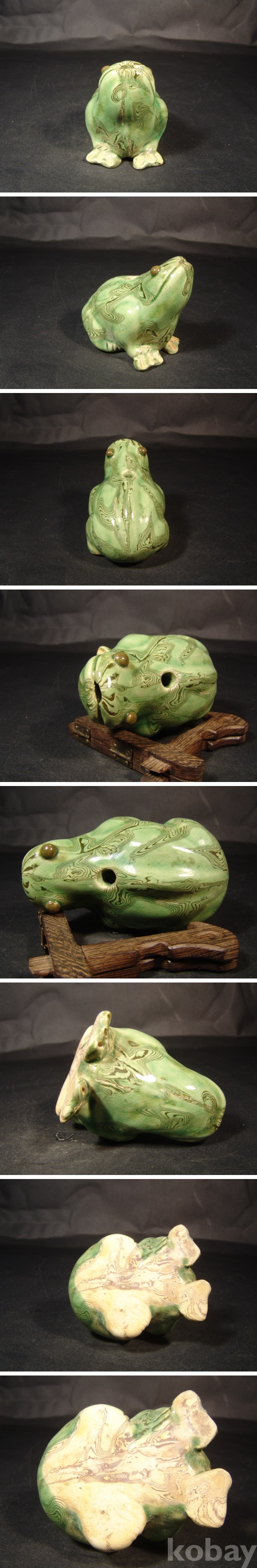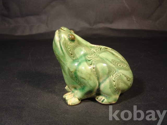 연리문이 시유된 개구리 모양의 귀여운 연적으로