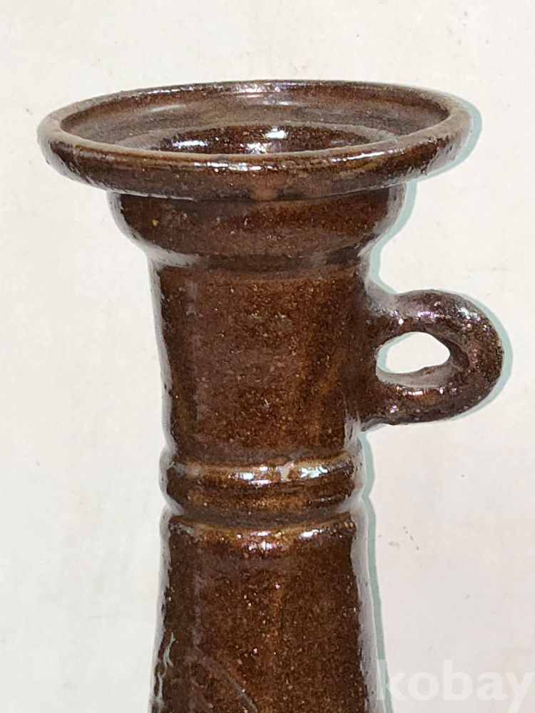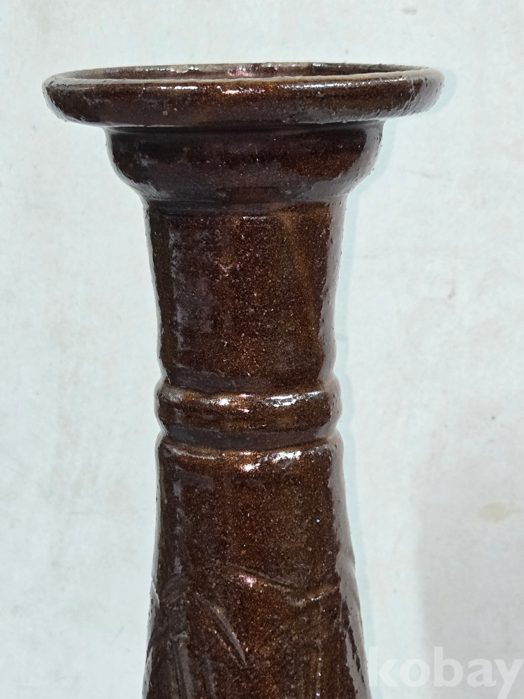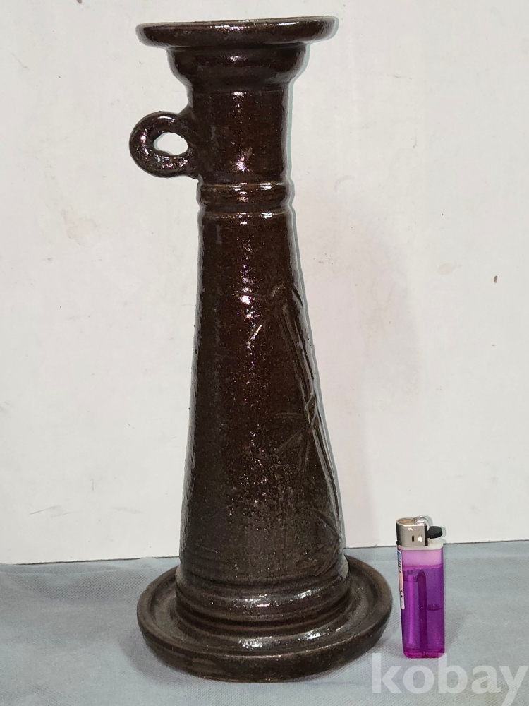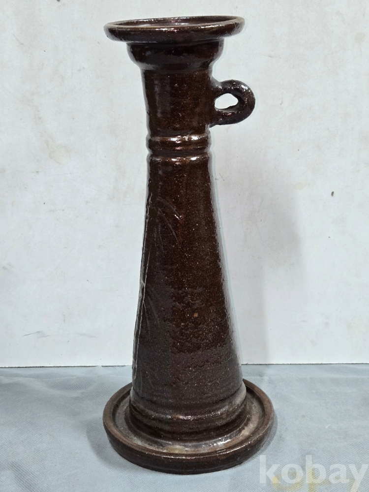 목이 긴 옹기 재질의 등잔대 ==높이 33.5cm의 큰형태