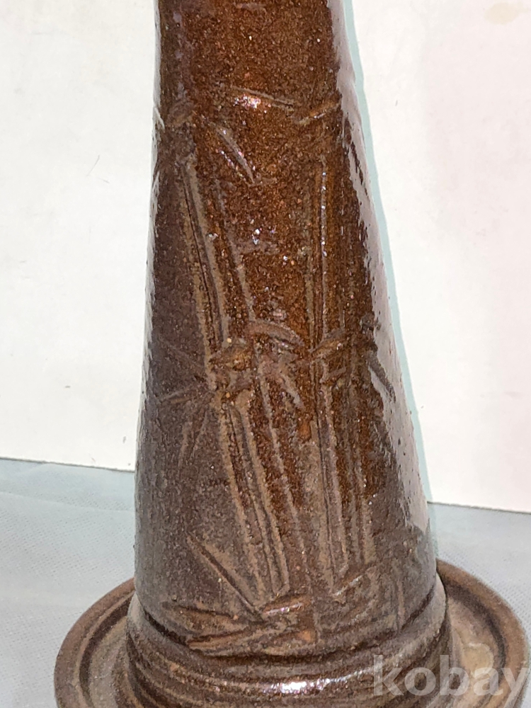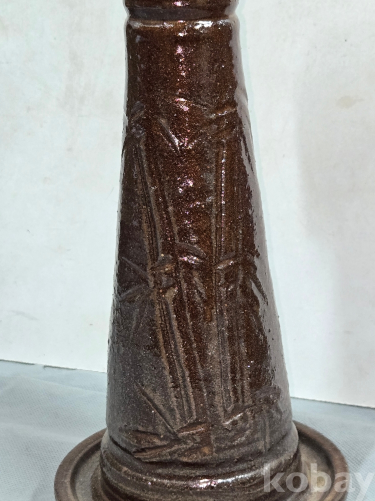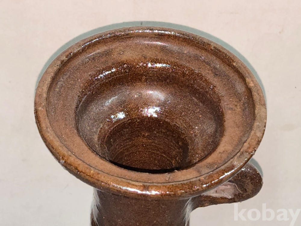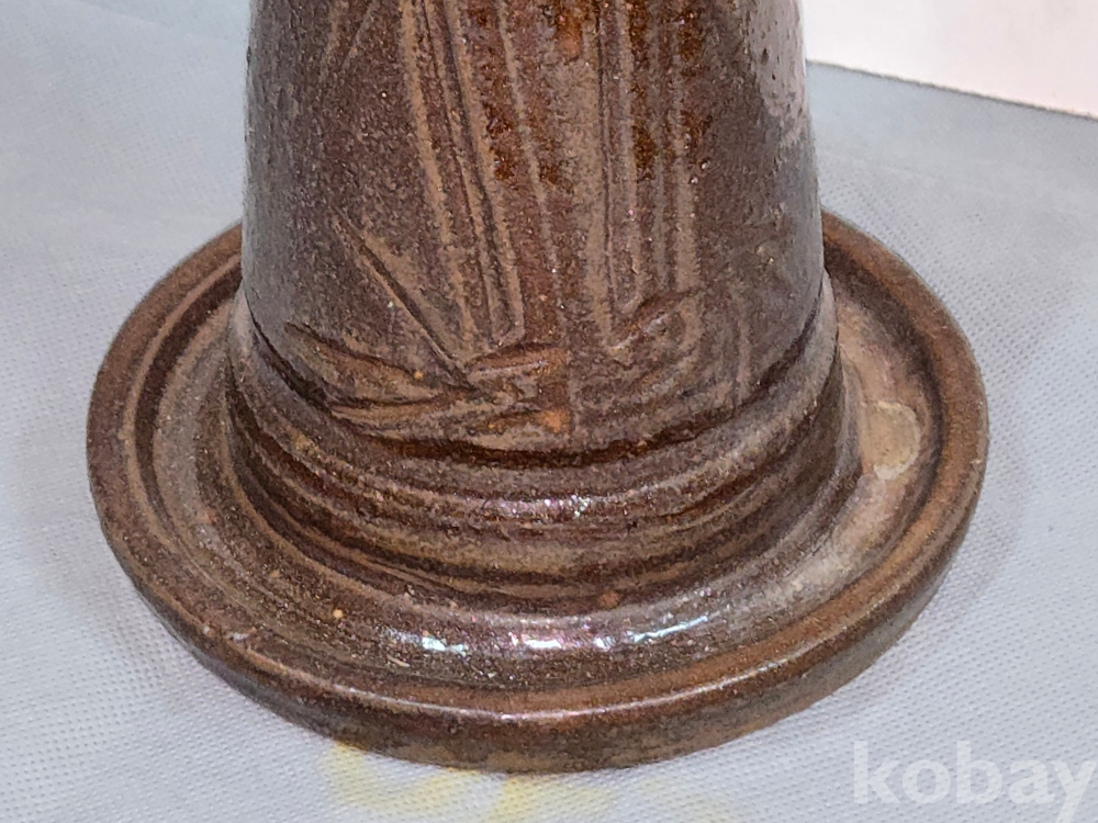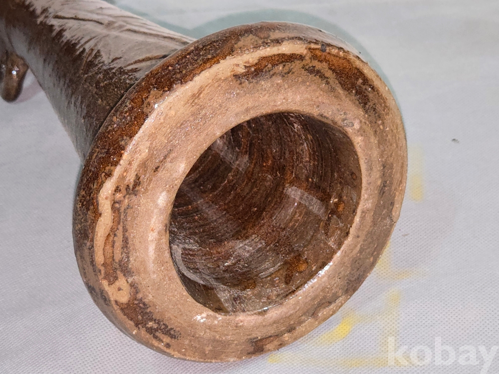 목이 긴 옹기 재질의 등잔대 ==높이 33.5cm의 큰형태