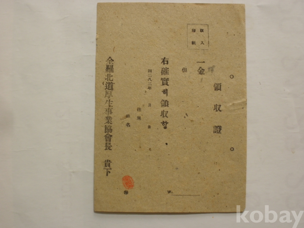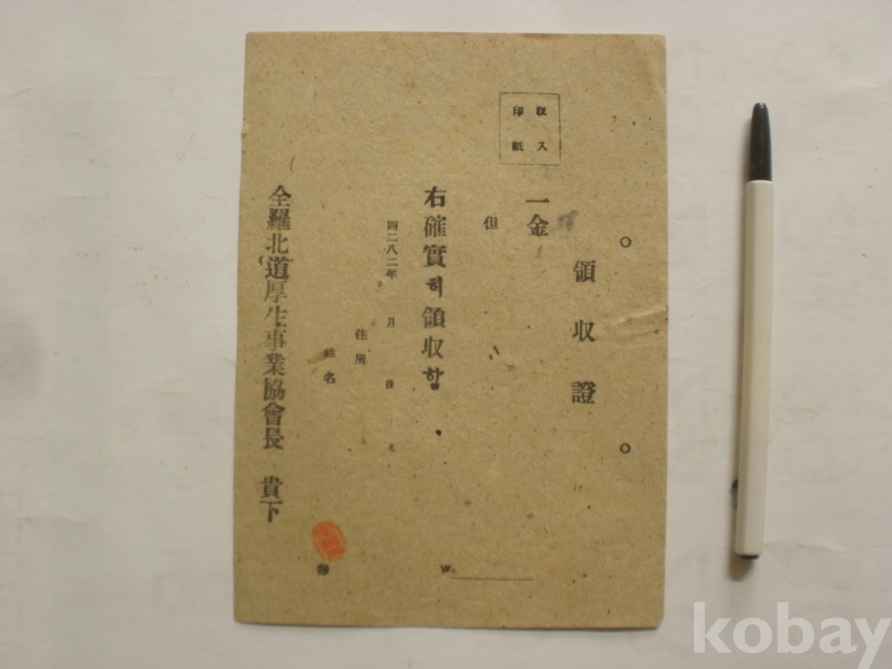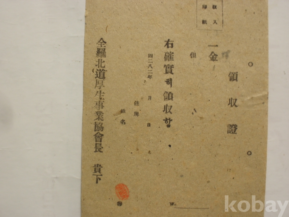 전라복도 후생사업협회 - 영수증 (1949년)