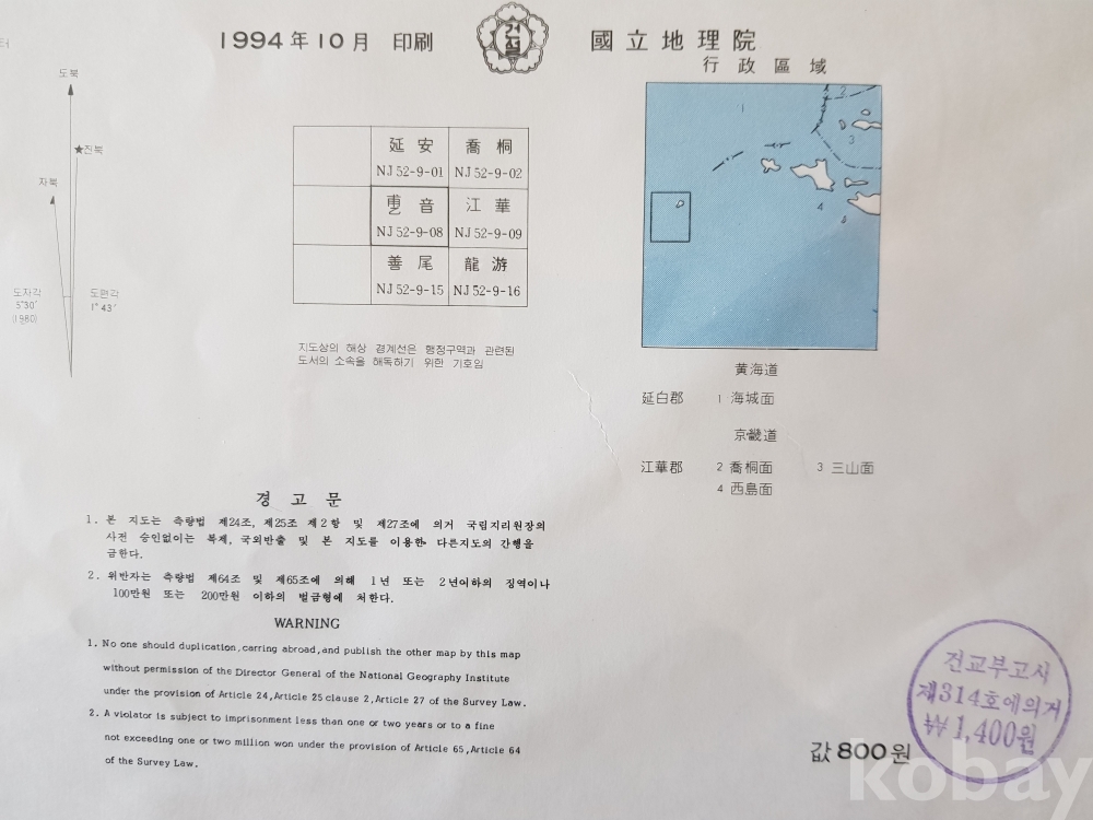 1975년 1:50,000 지도 (불음) 연백군, 강화군 수록됨