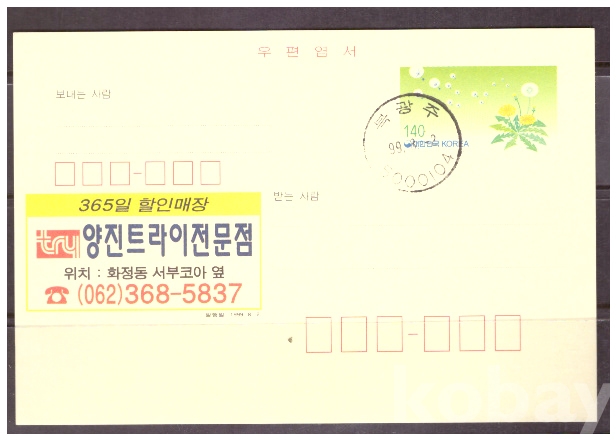 (광고엽서) 1999.8.2 지방판 LAPC370 양진상회 (민들레 140원) (초일일부인)