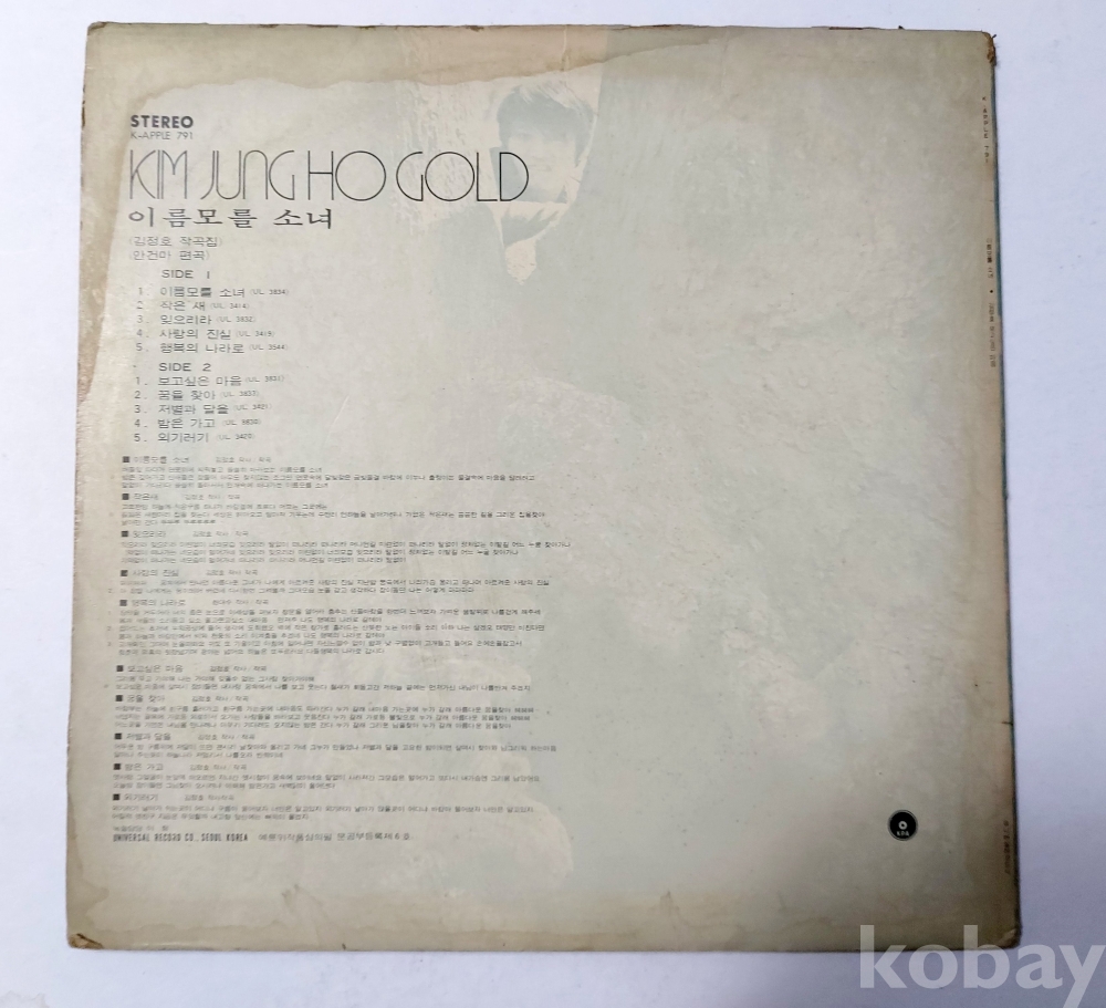 < LP음반 /김정호 골드 (이름모를 소녀/보고 싶은 마음)>
