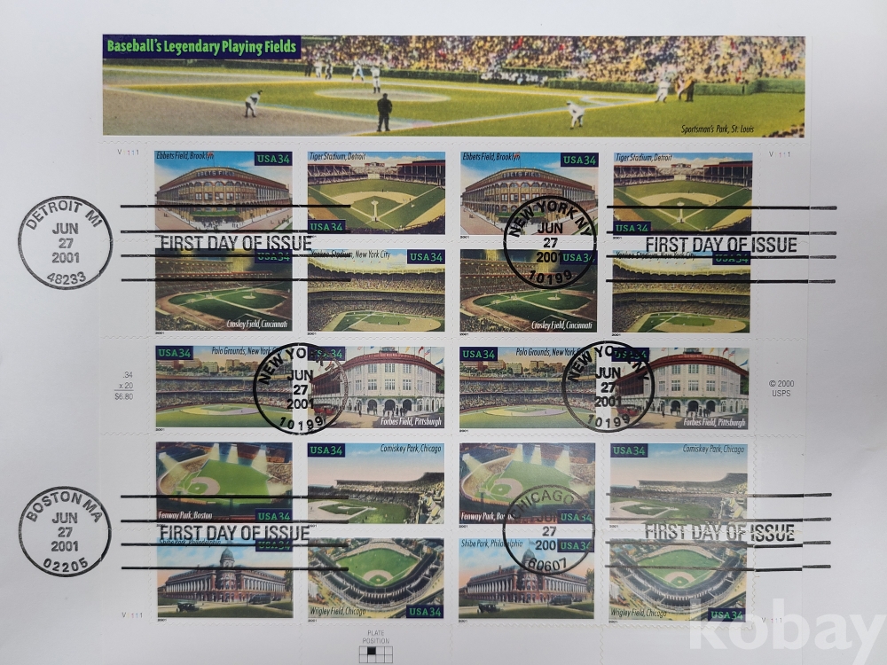 [테마자료*스포츠] 야구/미국 전지,FDC, 관제그림엽서첩(엽서10매 수록)