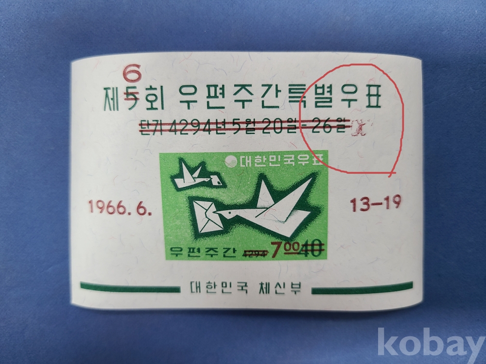 6회 우편주간 우표 변종(變種.바라이어티)*定常變種