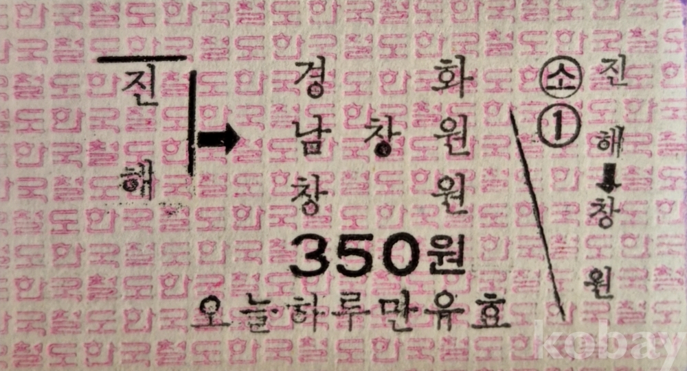 신형 비둘기호 승차권 진해-창원 일반입니다.