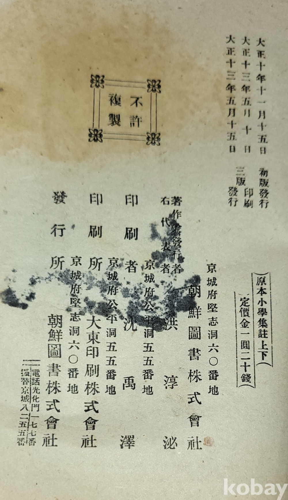 1929년 대정십삼년에 발행된 소학집주 (小學集註) 조선도서주식회사 발행입니다,