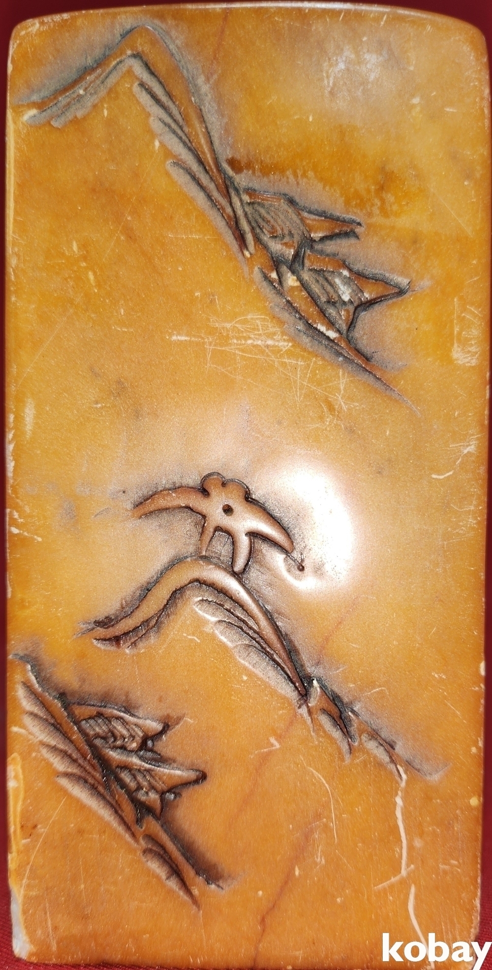 옥석(玉石)에 국화꽃 문양 사각 도장입니다,