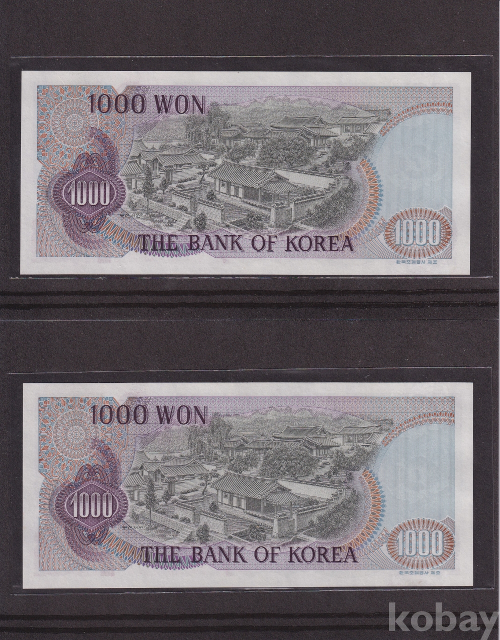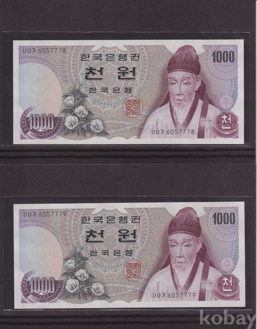- 한국은행 1975년 1차 천원 미사용 2연번 지폐 - 2장 일괄