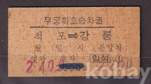 - 미사용 무궁화호 승차권 " 석포 ▶ 강릉 "