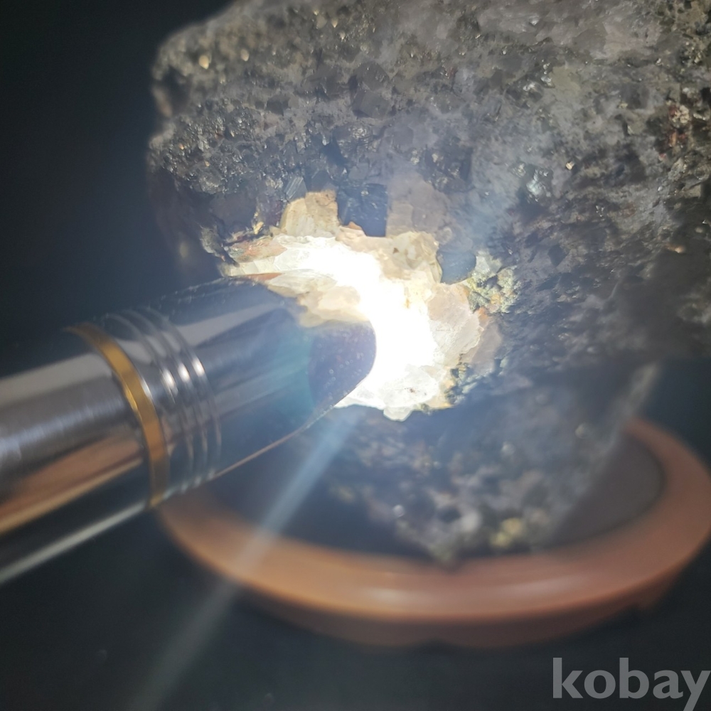 좌대위에 앉은 소형 수정 수석입니다