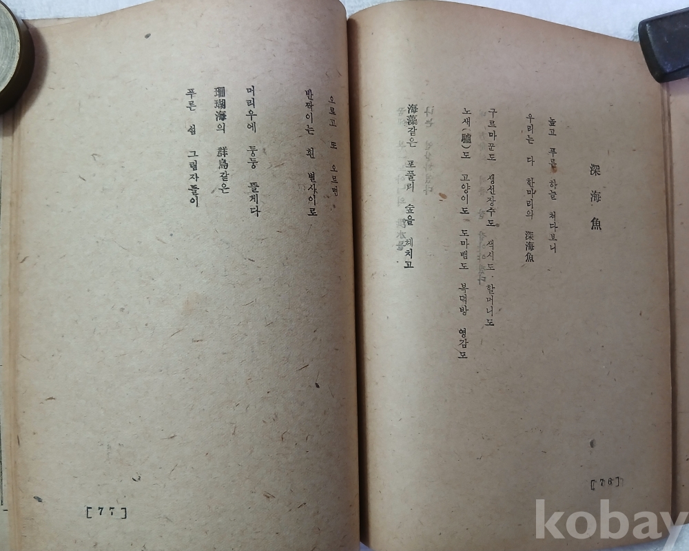 이것은 해방 이전에 발행되었던 《자화상》 과 《윤리》의 두 시집 중에서 뽑아낸 것과 그의 동시작(同時作)으로