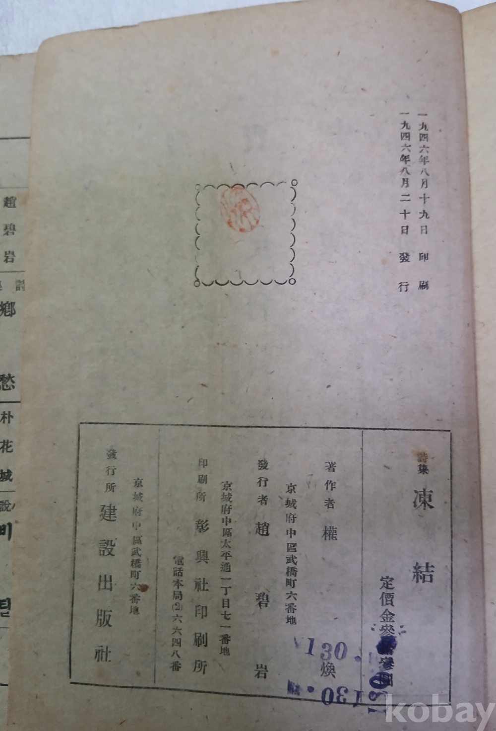 [출처] 동결 - 권환 시집 건설출판사 1946년초판