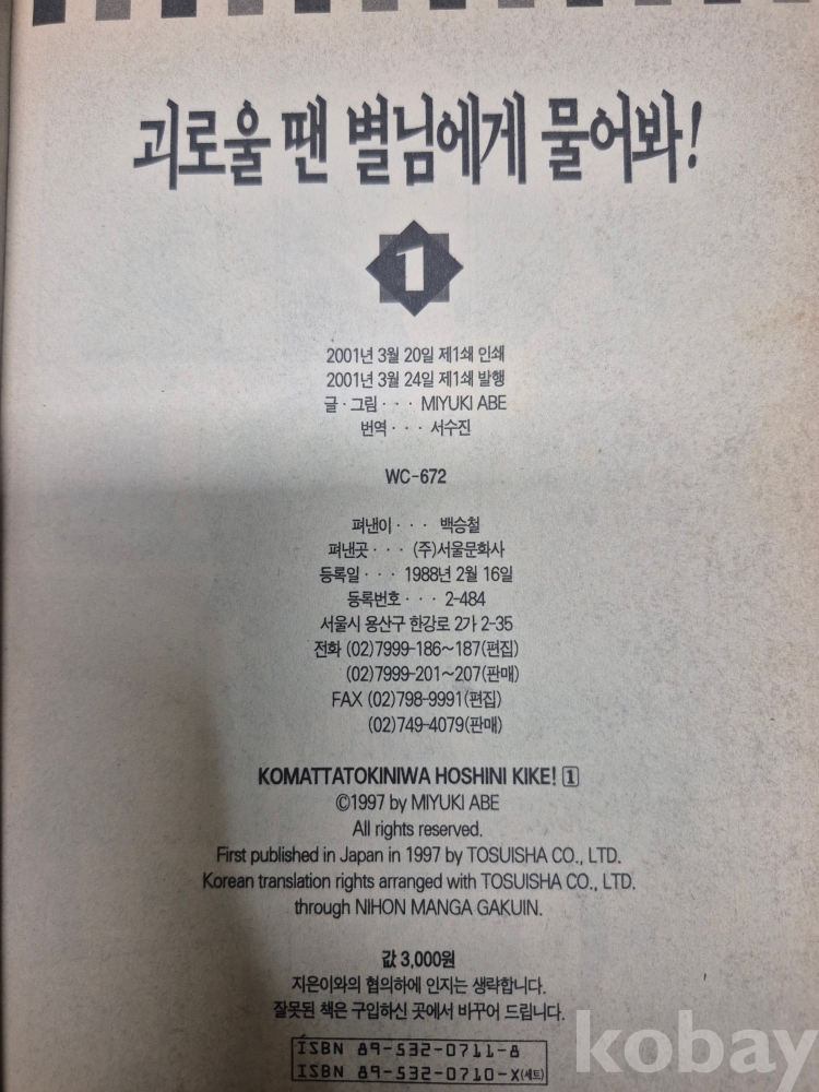 2001년 순정만화 아베 미유키 괴로울땐 별님에게 물어봐 1권에서 26권 까지 완결