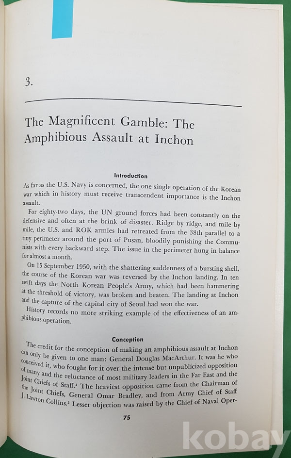1957년 6.25전쟁 인천상륙작전 내용이 실린 [THE SEA WAR in KOREA]*75면 ~106면까지 인천상륙작전 관련내용이 수록됨