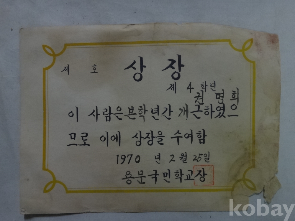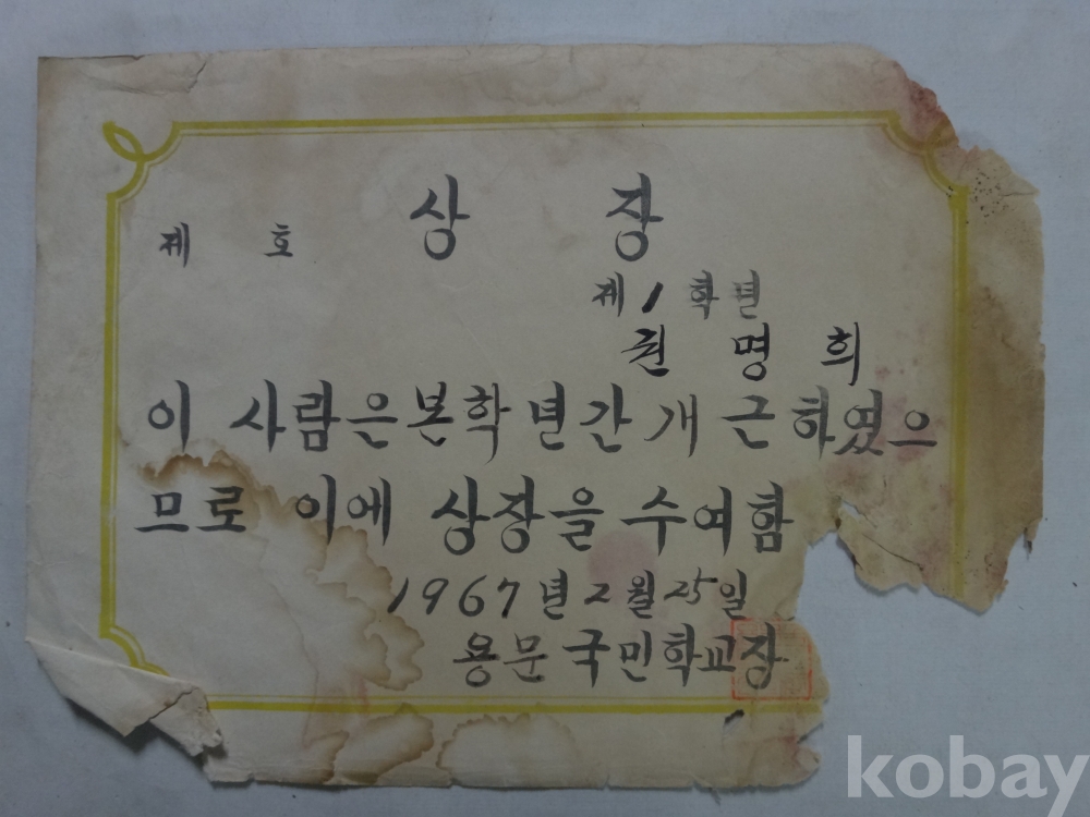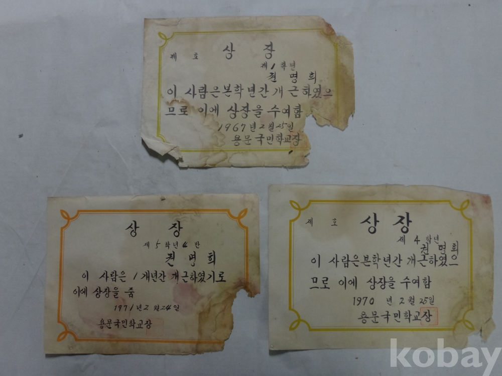 용문국민학교 개근상장 - 3매일괄 (1967년~, 권명희)