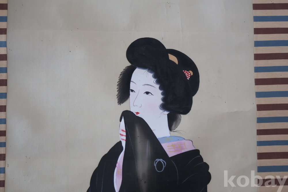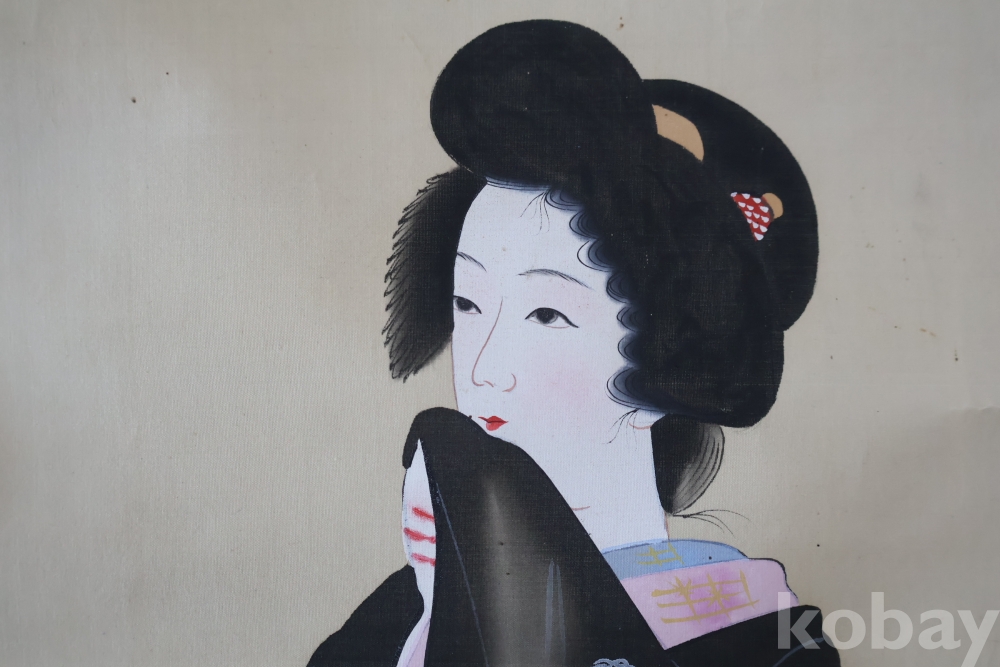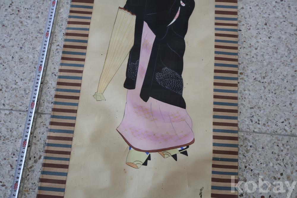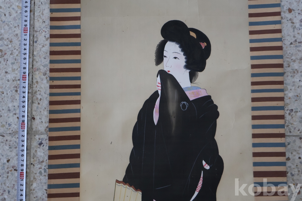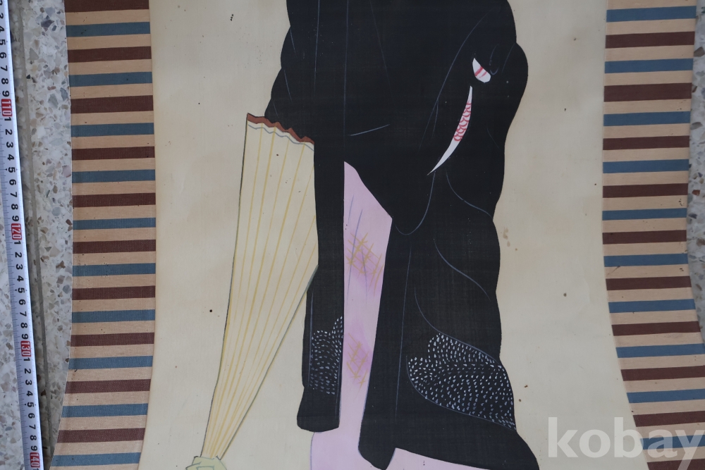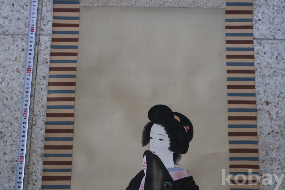 아름다운 미인 족자 임니다 화가의 낙관을 가진 멋진 비단 그림 임니다 사진 참조 하세요 1930대 이후 작