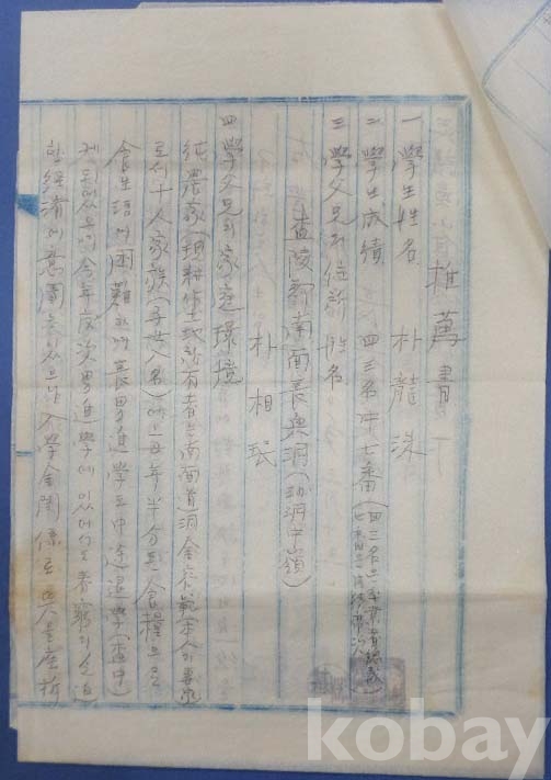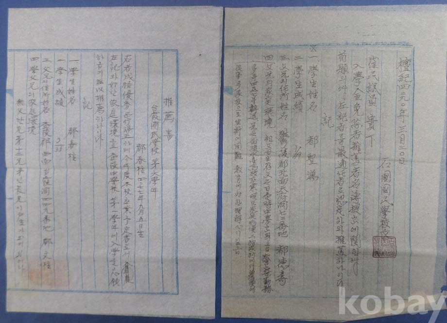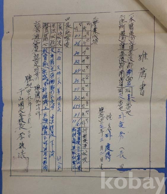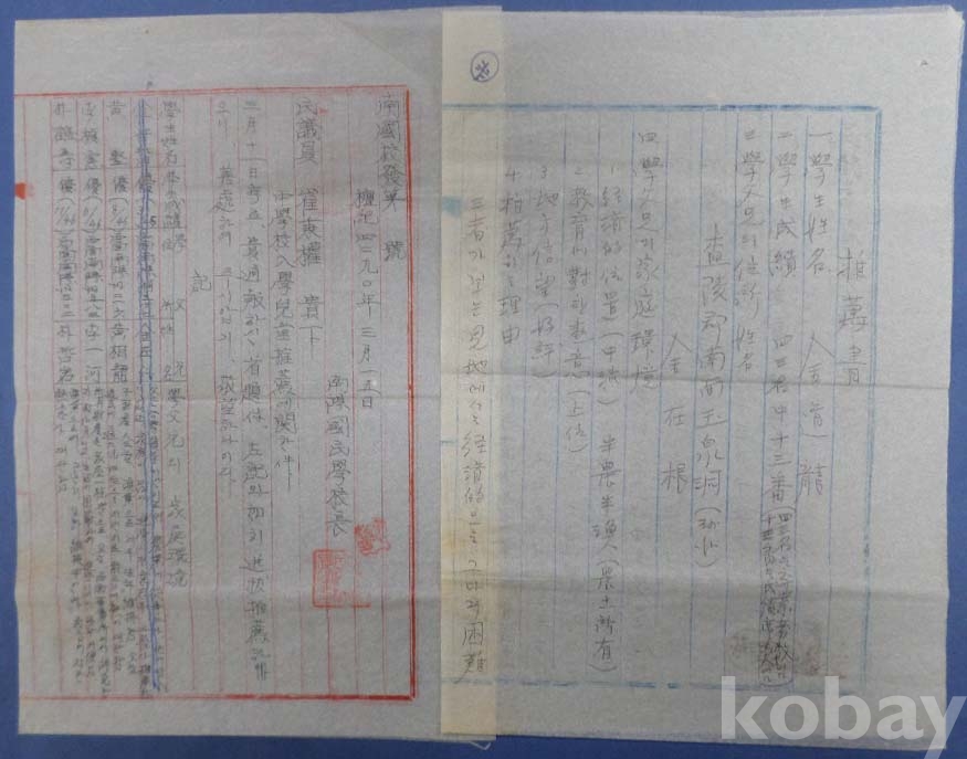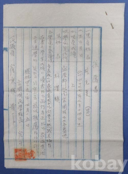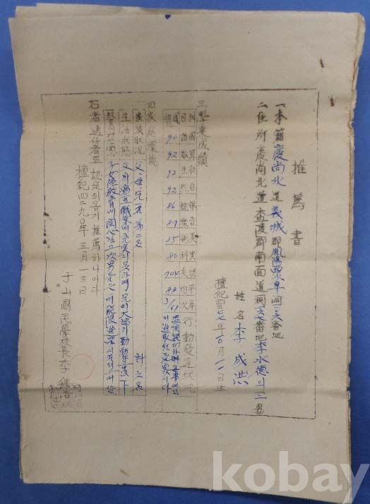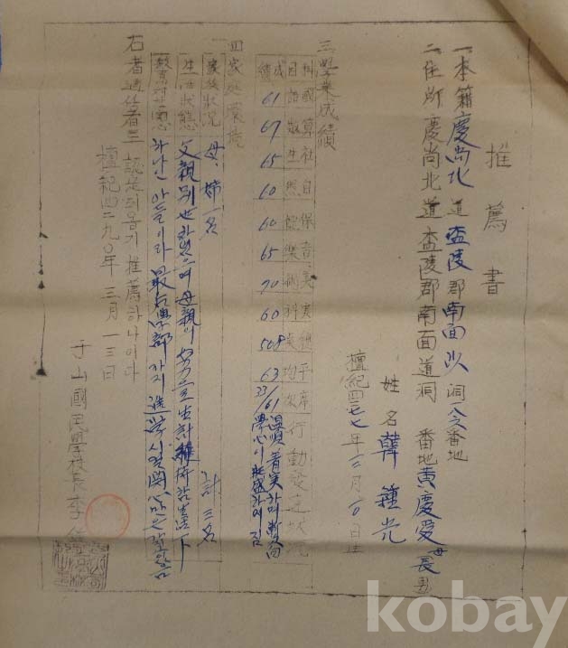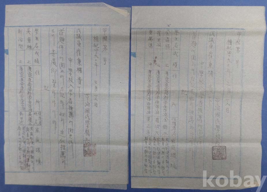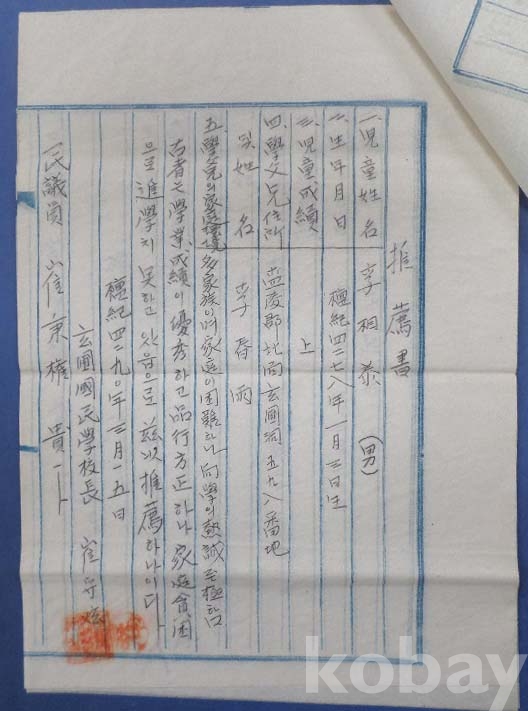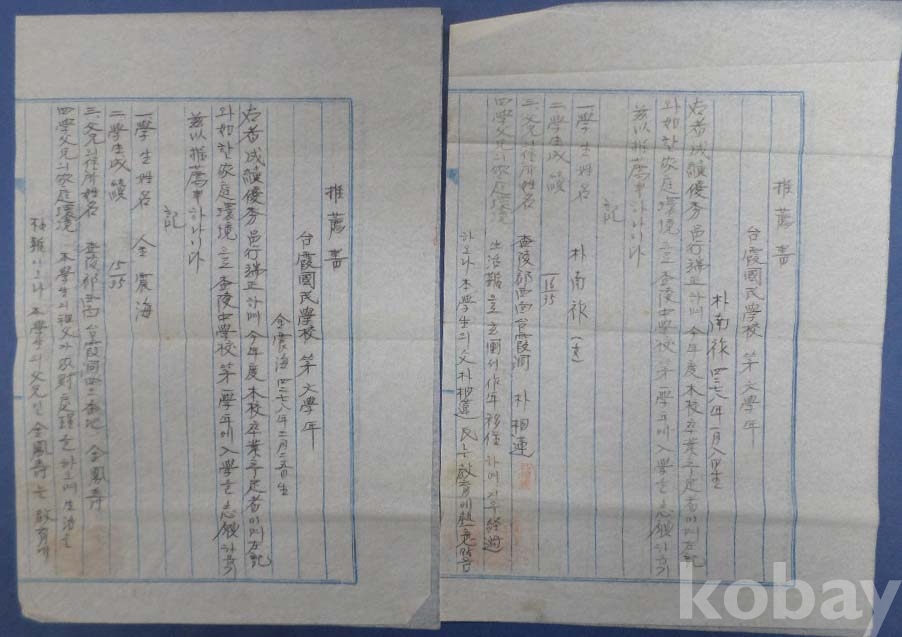 경북 울릉지역 국민학교 졸업생들의 중학교 진학 관련자료 일괄 (추천서 등)