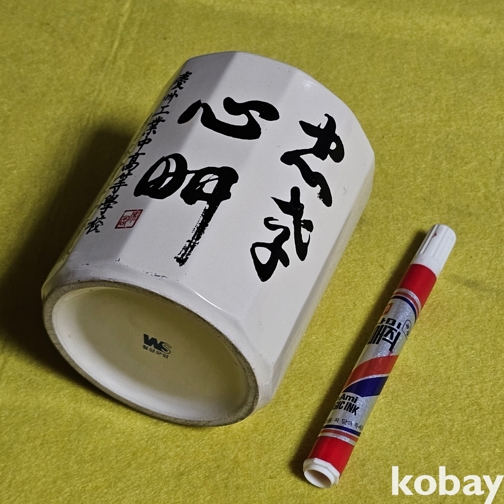 (((근현대사자료))) 한문서체가 멋진 1989년 10각형 도자기 붓통