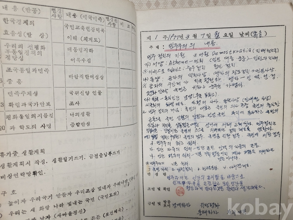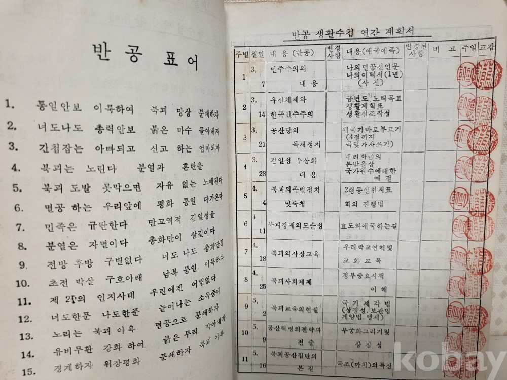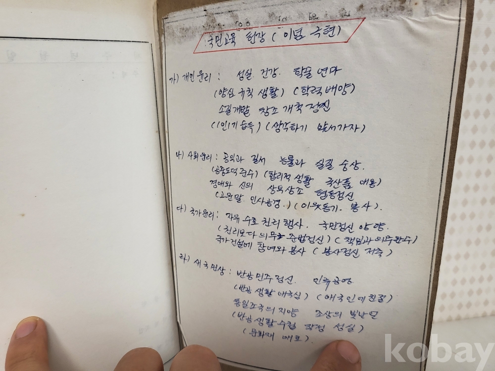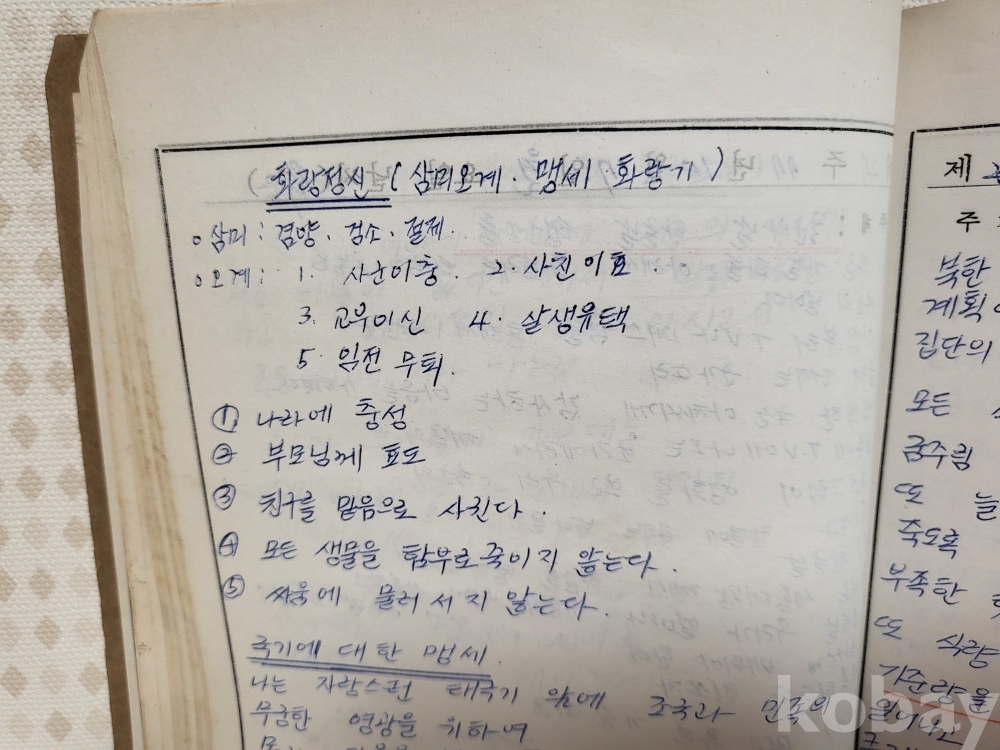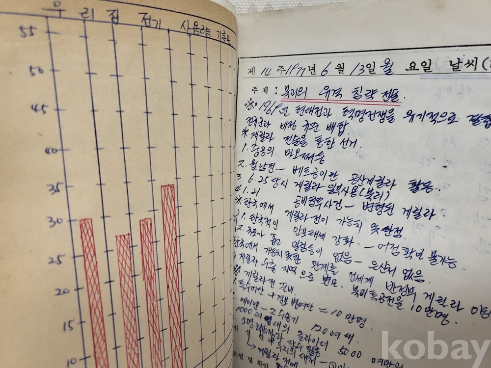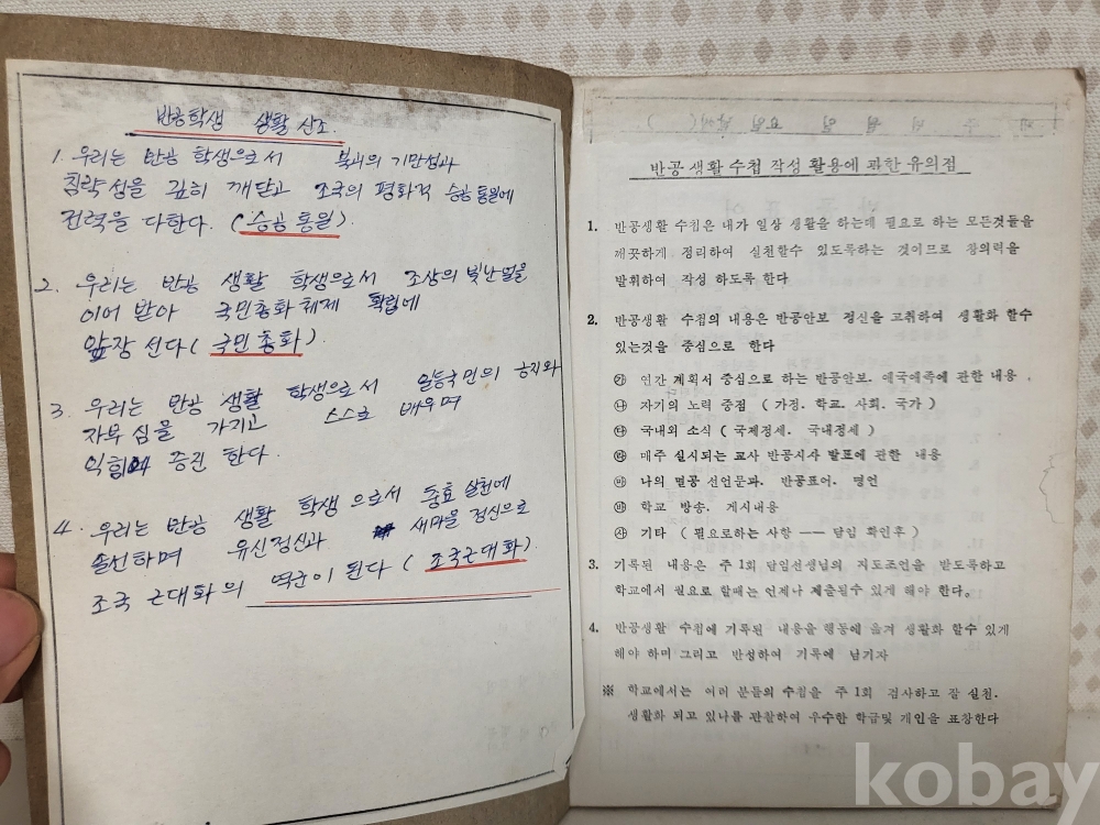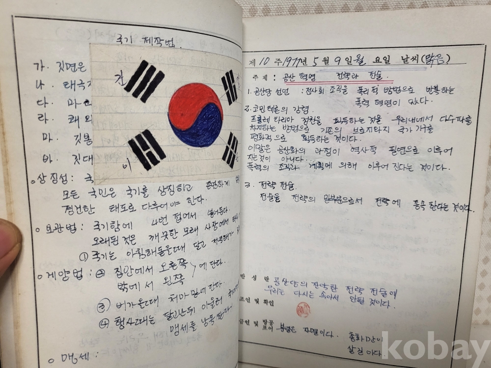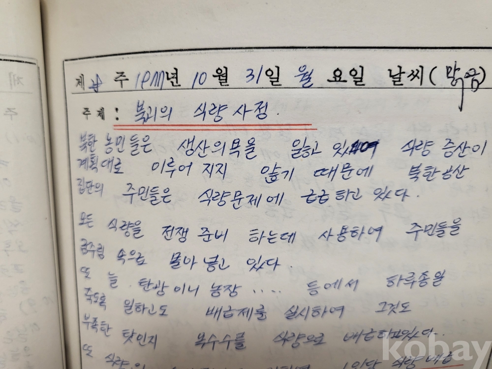 당시 여학생이 북한사상을 메모하고 학습한 학습일지입니다
