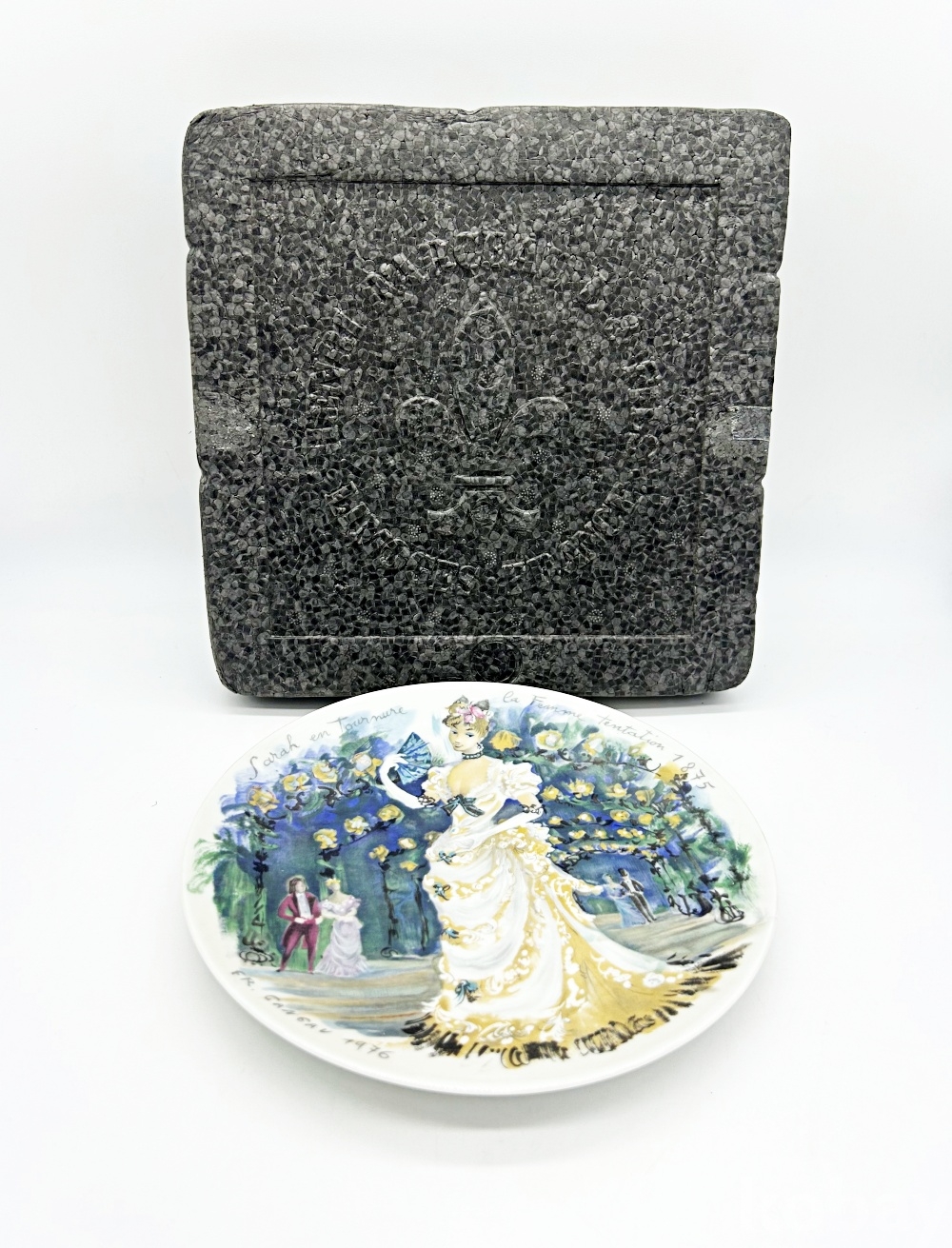상품설명 | 앙리 다르소 리모주(Henri d'archeau L&Fils)의 '세기의 여성들' 컬렉션 장식 접시로 한정판으로 제작되었다. 파리 예술가 '프랑수아 가노'의 '투르뉘르 차림의 사라(Sarah en Tournure)'가 그려져 있다. 박스 25.5 x 25.5 cm / 접시 21.3 x 21.3 cm | ||