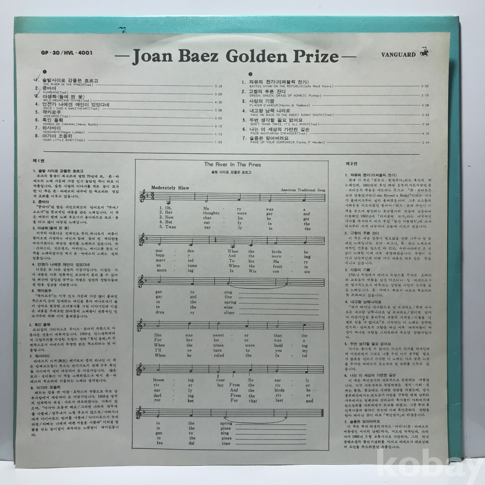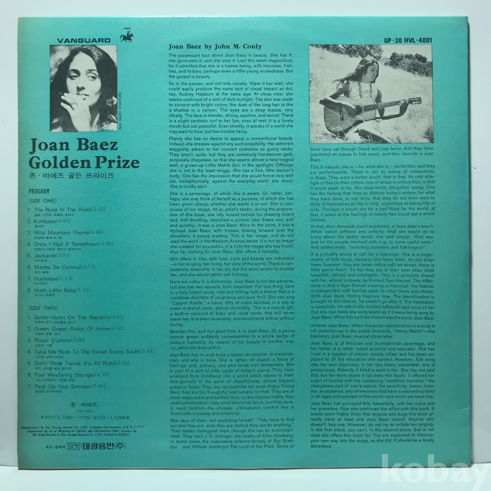 LP 82,350-4 JOAN BAEZ GOLDEN PRIZE . 자켓 EX+ 알판 EX+ 80 년제작 국내반