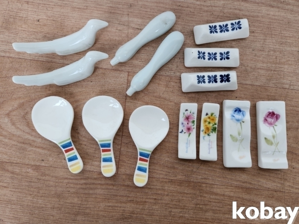 여러 가지 모양의 수저 받침 도자기 입니다.