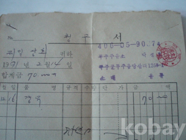 무주 주유서 - 경유대금 등 청구서 (1991년)