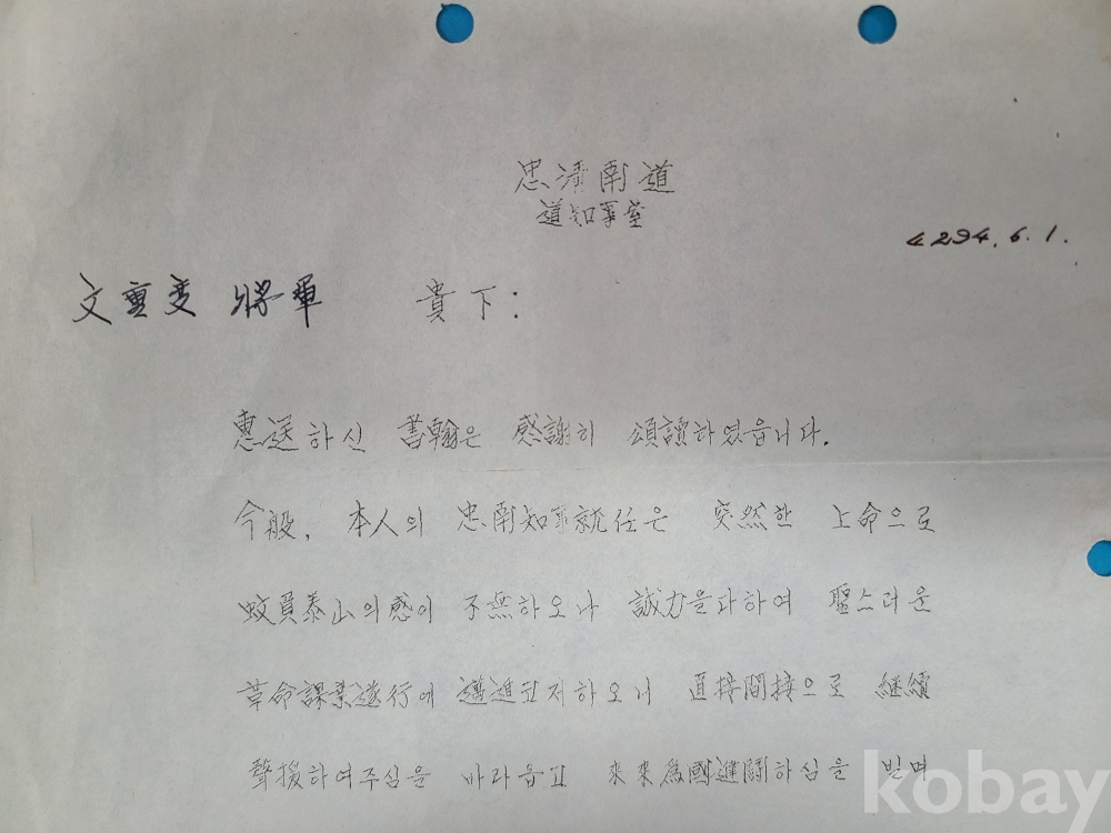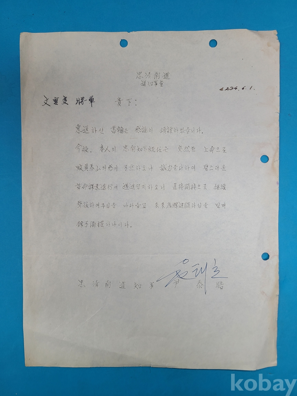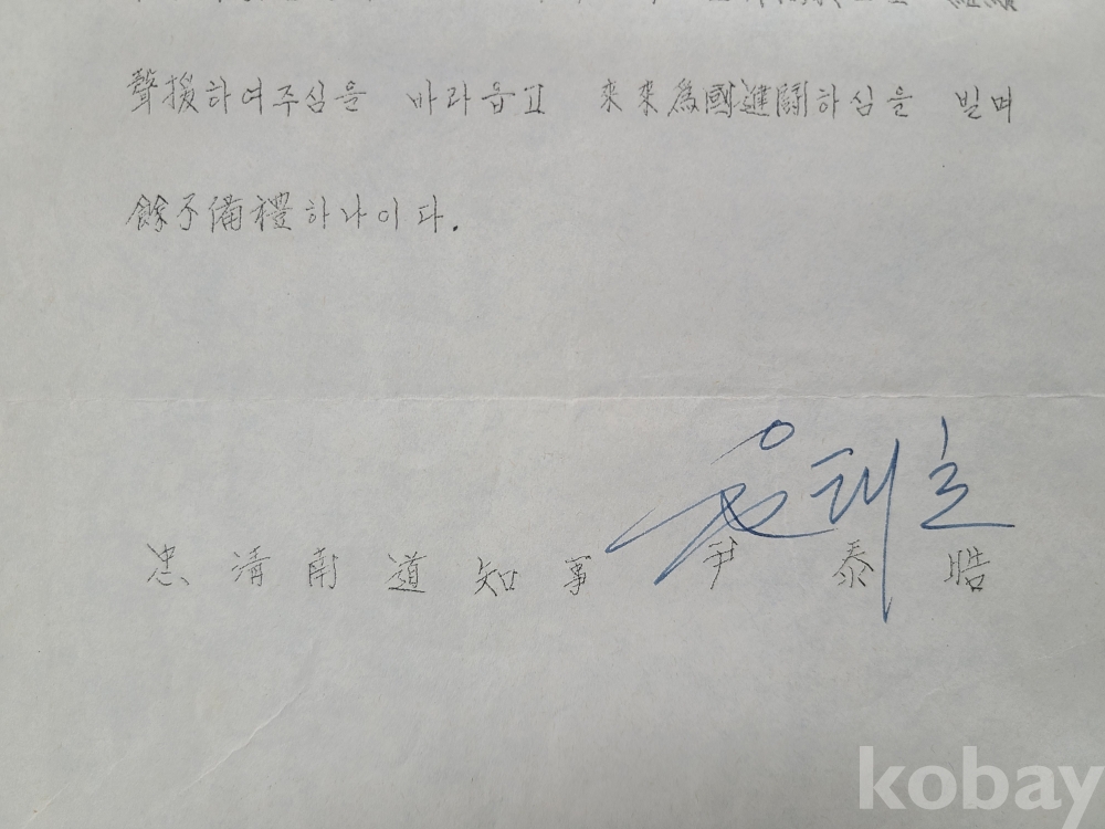 **** 1961년 충청남도지사 윤태호 친필 서한문